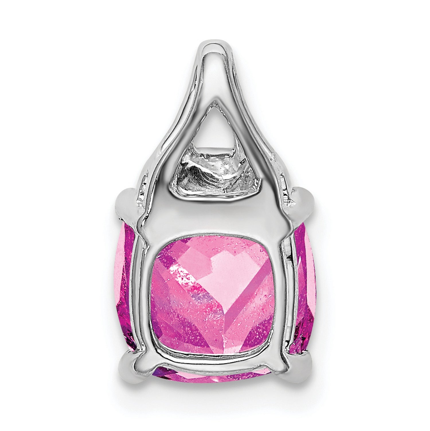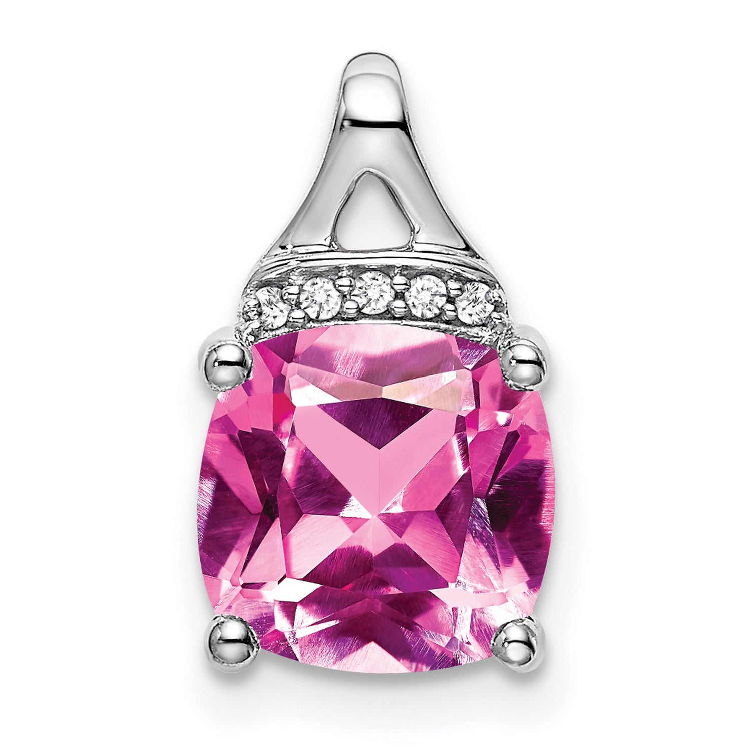 14k White Gold Pendant with Cushion Cut Lab Created Pink Sapphire and Diamond Accents