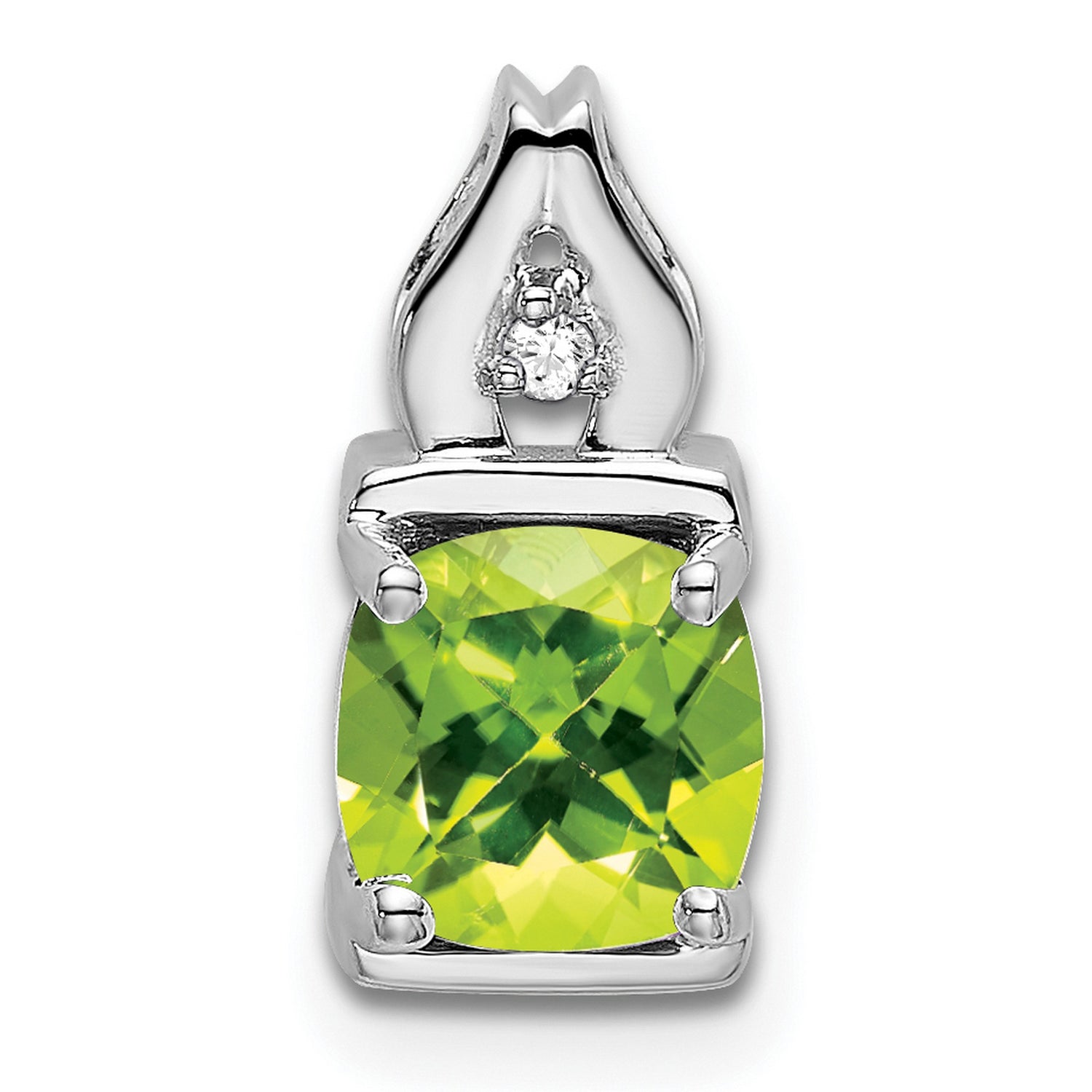 14k White Gold Pendant with Cushion Cut Peridot and Diamond Accent, August Birthstone Style