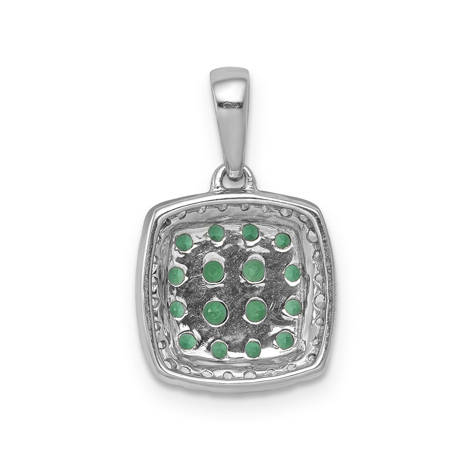 14k White Gold Pendant with Emerald Cluster and Diamond Halo Charm for Women