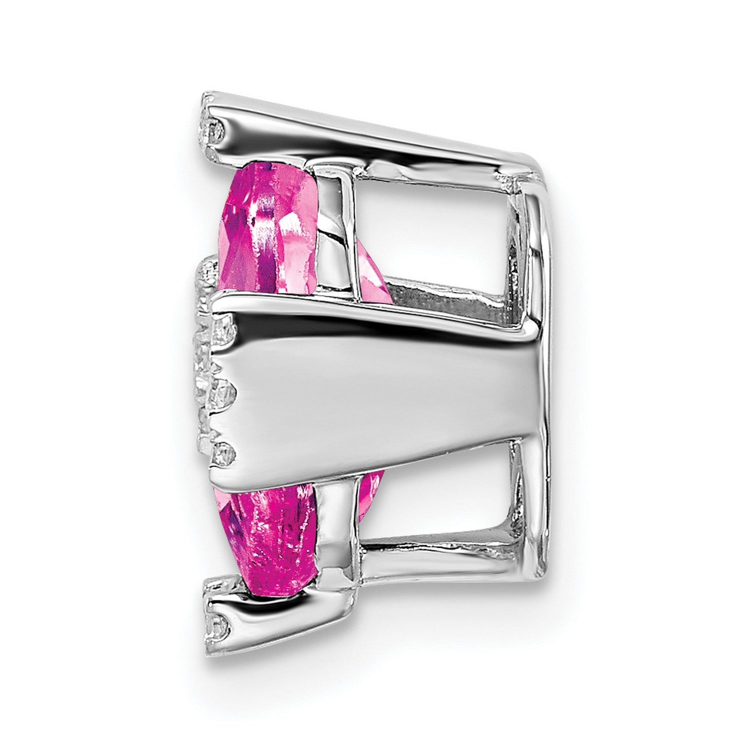 Discover the exquisite elegance of our Octagon Created Pink Sapphire Diamond Chain Slide Charm Pendant, meticulously crafted in real 14k white gold. This stunning pendant is designed to captivate and inspire, making it a perfect addition to any jewelry collection.