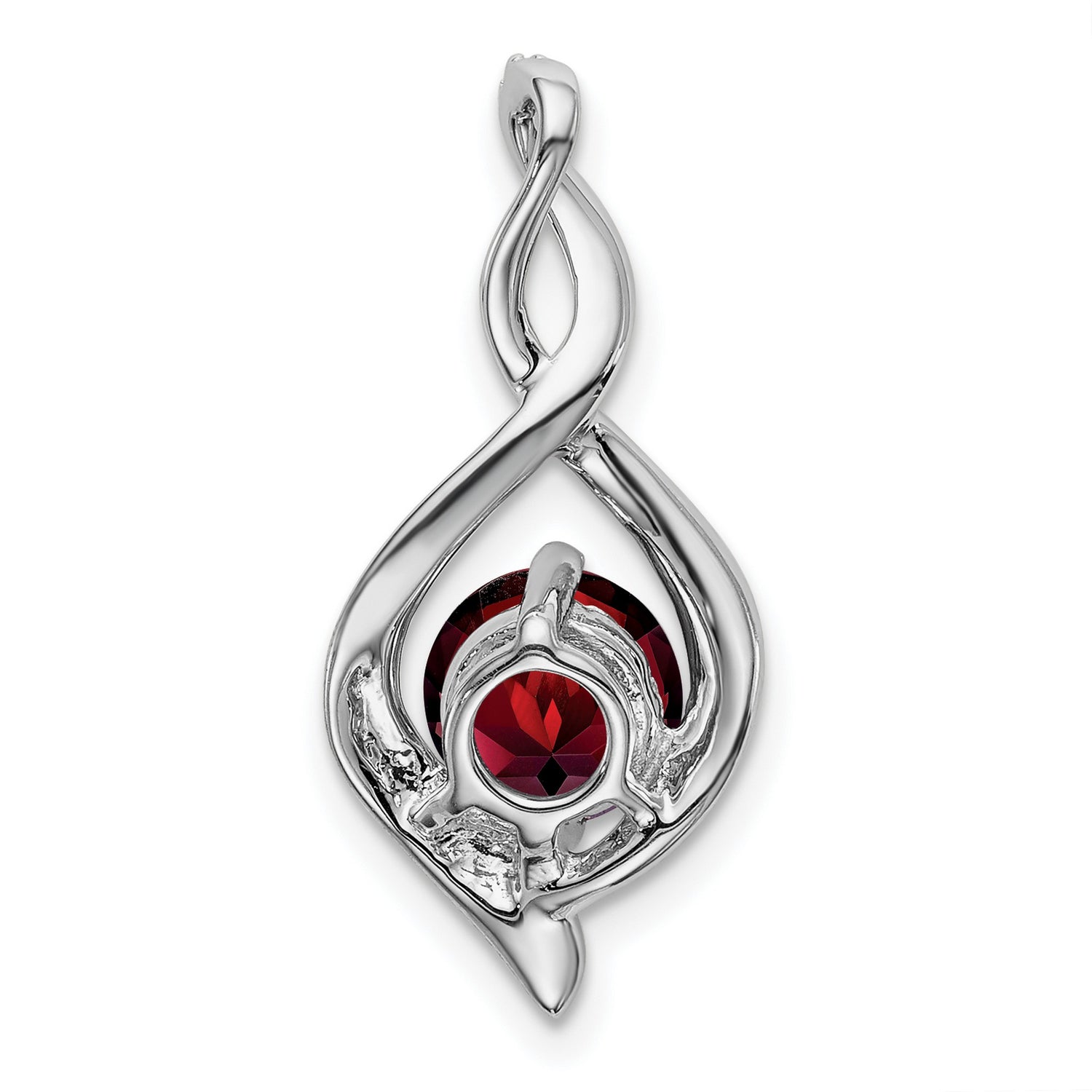 14k White Gold Pendant with Garnet and Diamond Accents in Twisted Teardrop Design