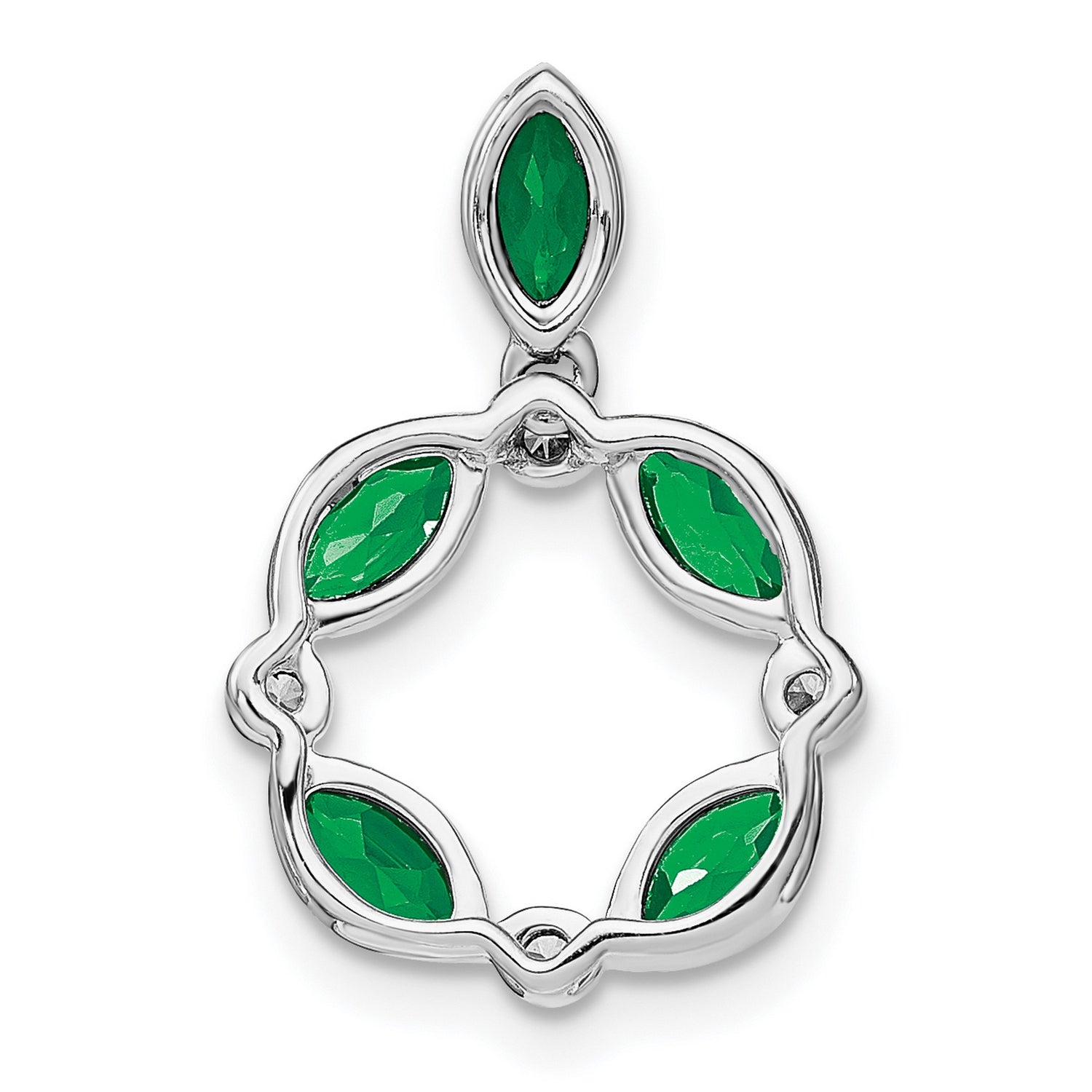14k White Gold Pendant with Marquise Emeralds and Diamond Accents in Floral Design
