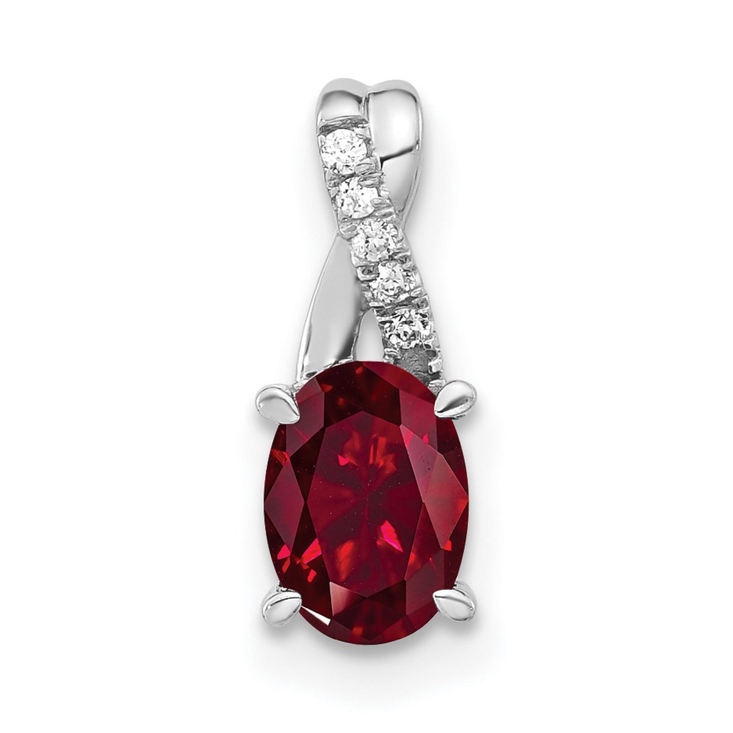 14k White Gold Pendant with Oval Lab Created Ruby and Diamond Accents, Twisted Design