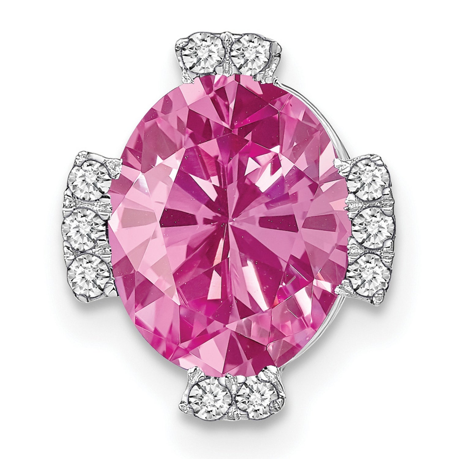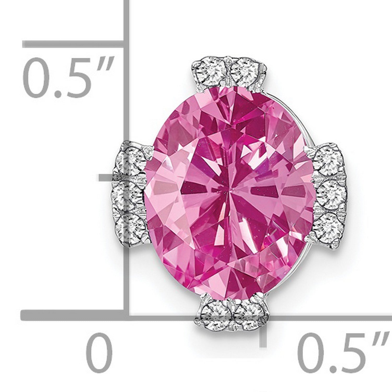 Oval Created Pink Sapphire and Diamond Chain Slide Charm Pendant in Real 14k White Gold