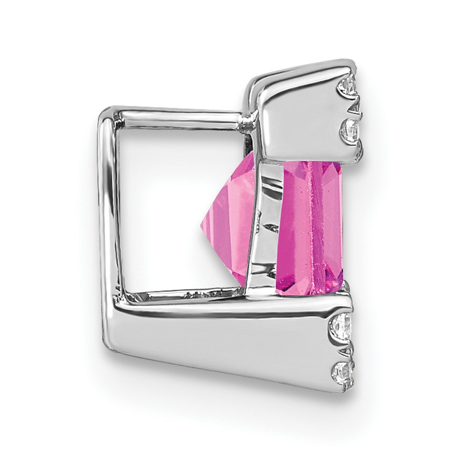 Elevate your elegance with our stunning Square Created Pink Sapphire Diamond Chain Slide Charm Pendant, masterfully crafted in real 14k white gold. This exquisite piece is a perfect blend of modern sophistication and timeless allure, capturing attention with every movement.