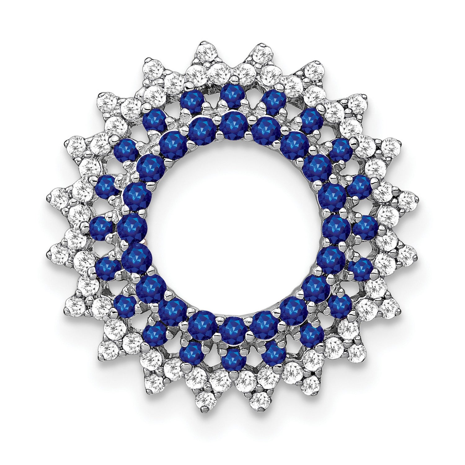 Whether you're looking to treat yourself or a loved one, this Sapphire and Diamond Sunburst Chain Slide Charm Pendant in real 14k white gold will not disappoint. Its timeless appeal and radiant sparkle make it a cherished addition to any jewelry collection.