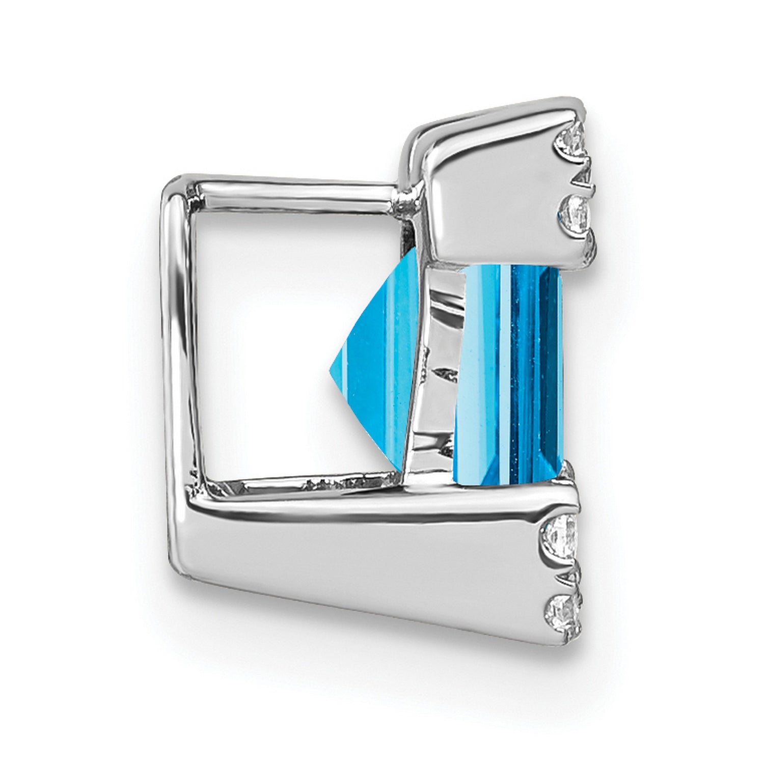 Indulge in the allure and brilliance of the Square Blue Topaz and Diamond Chain Slide Charm Pendant. Its rich design and luxurious materials are sure to leave a lasting impression. Add it to your jewelry collection today and experience the timeless beauty of this exquisite piece.