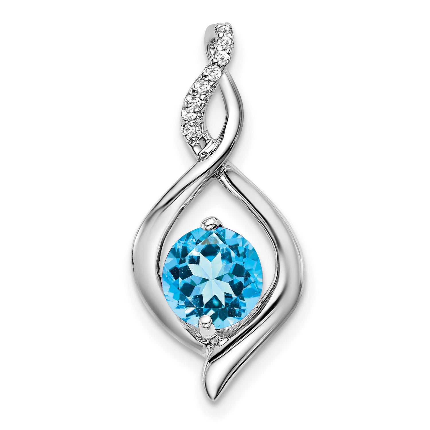 14k White Gold Pendant with Swiss Blue Topaz and Diamond Accented Swirl Design
