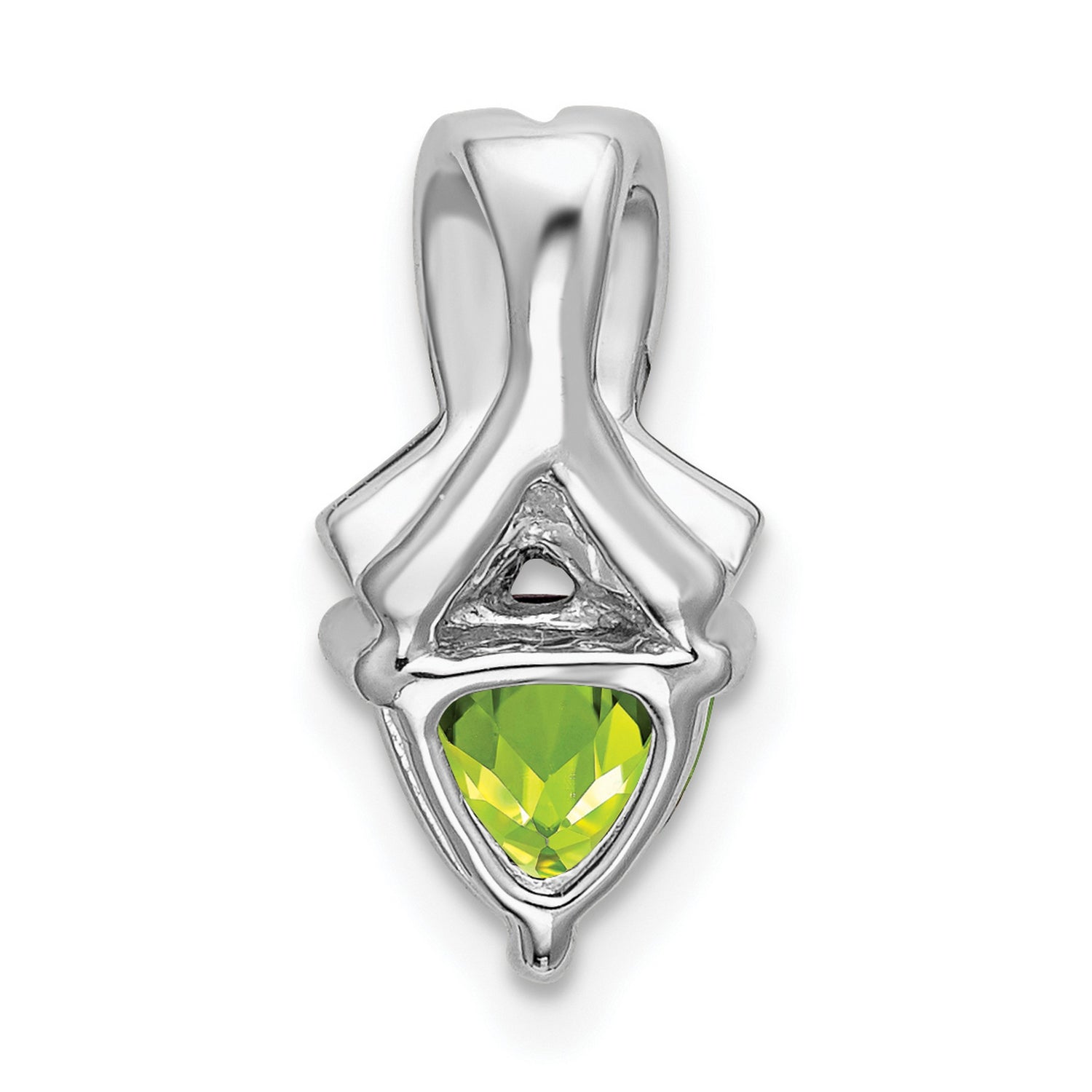 Trillion Peridot and Diamond Charm Pendant in Real 14k White Gold