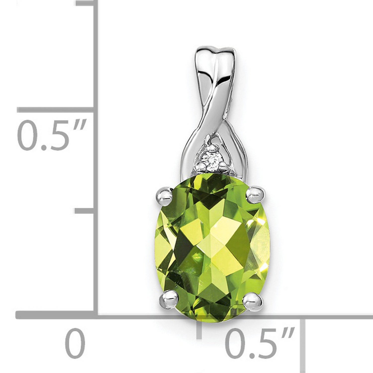 Oval Peridot and Diamond Charm Pendant in Real 14k White Gold