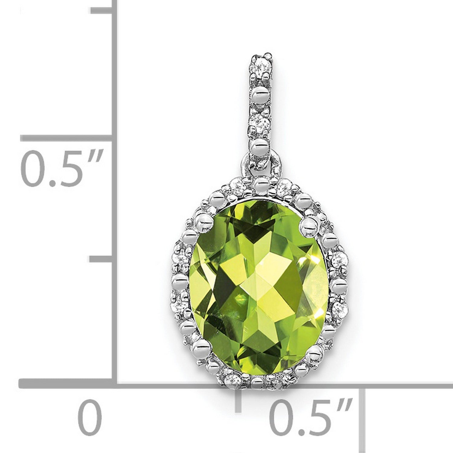 14k White Gold Peridot Pendant with Diamond Accents, Oval Halo Design