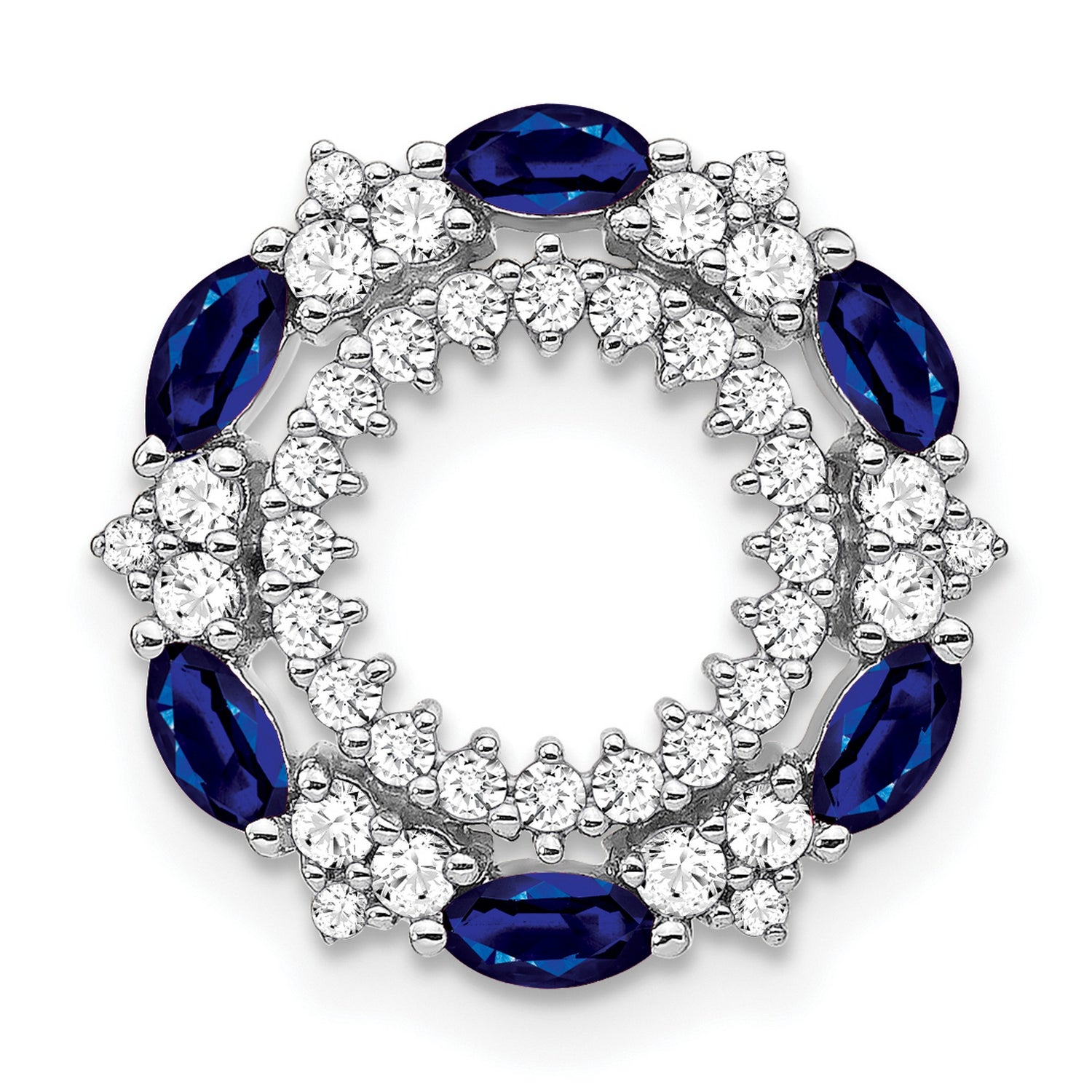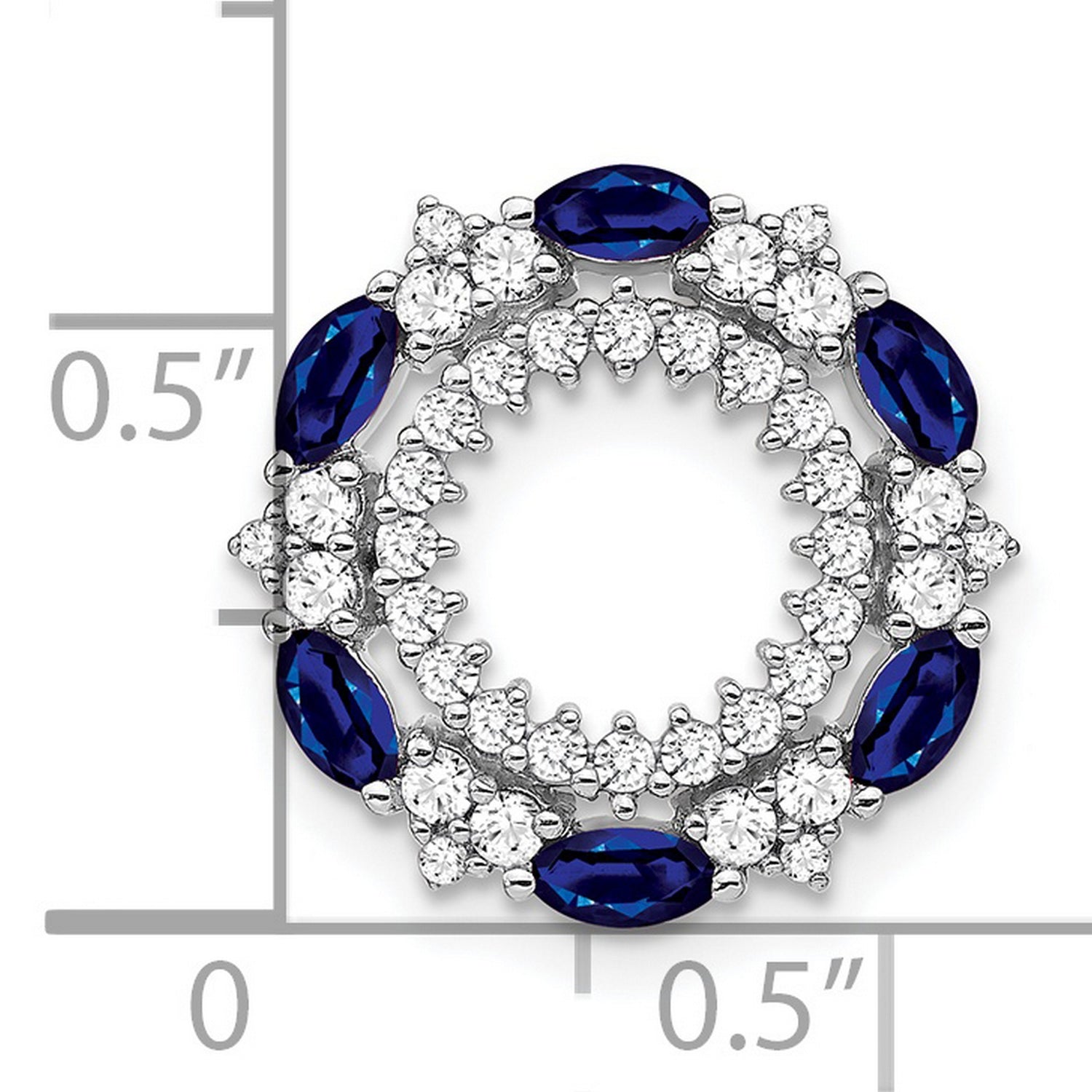 Embrace elegance with our Sapphire and Diamond Circle Chain Slide Charm Pendant crafted meticulously in genuine 14k White Gold. This pendant seamlessly blends classic charm with modern design, making it a must-have addition to your jewelry collection.