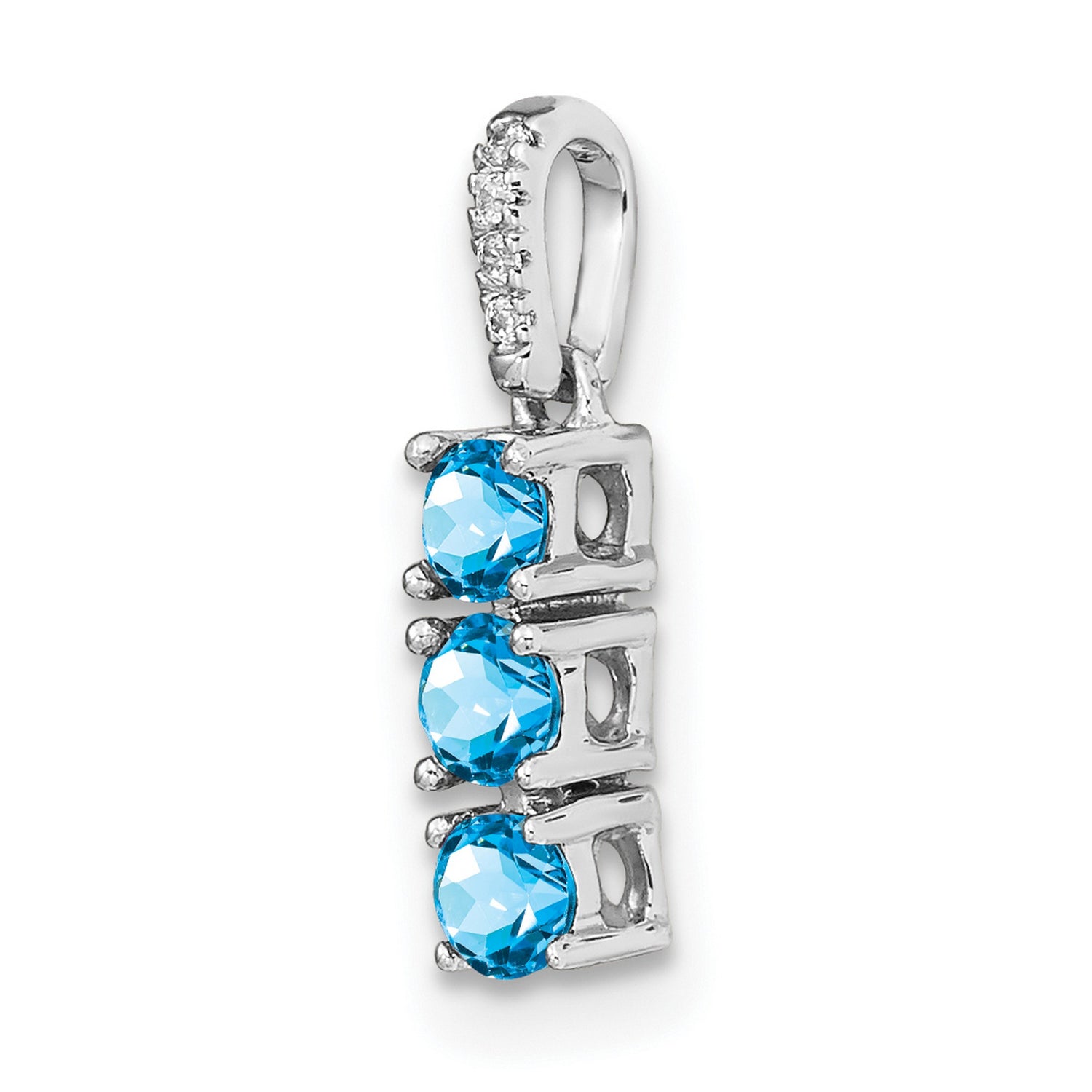 3-stone Blue Topaz and Diamond Charm Pendant in Real 14k White Gold