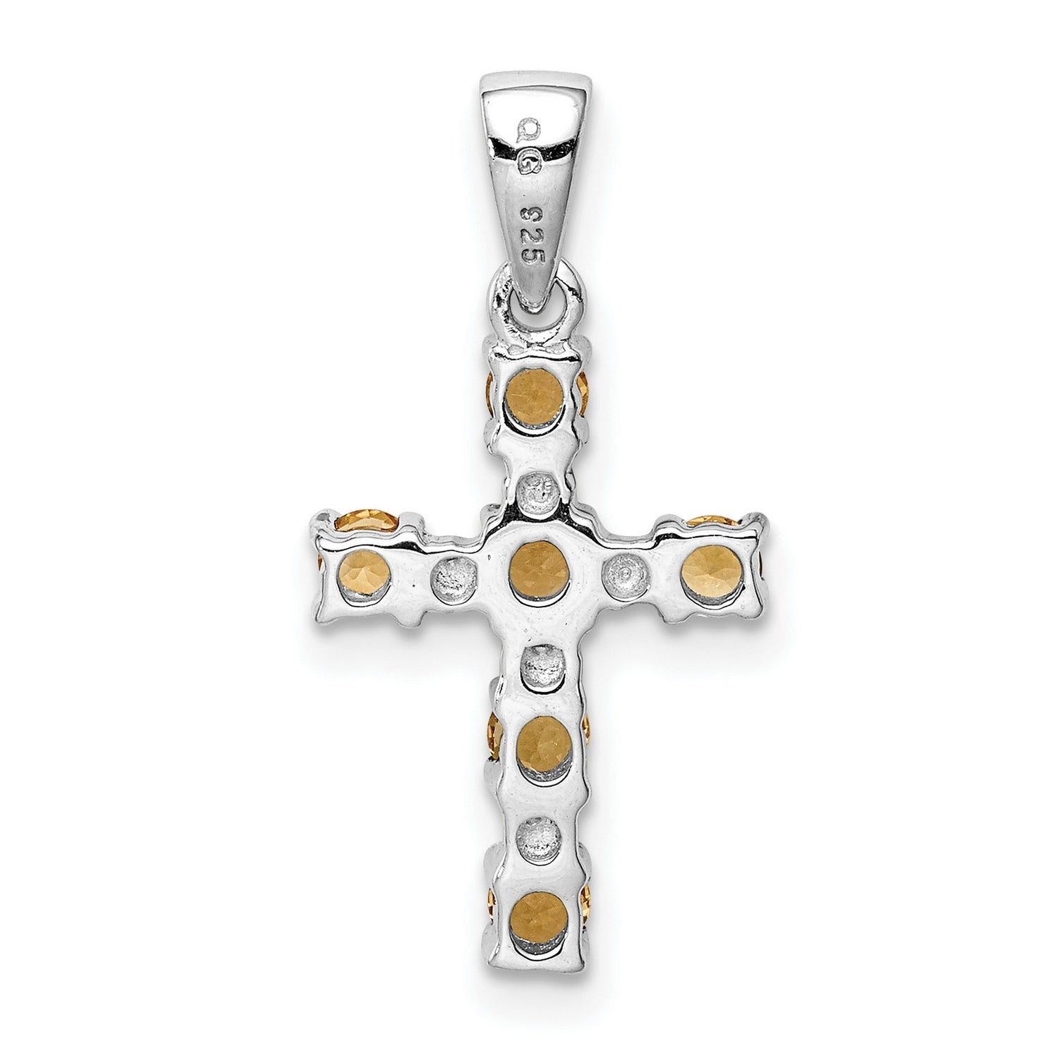 Citrine and Diamond Cross 15x10mm 0.33ct Charm Pendant in Real 925 Sterling Silver