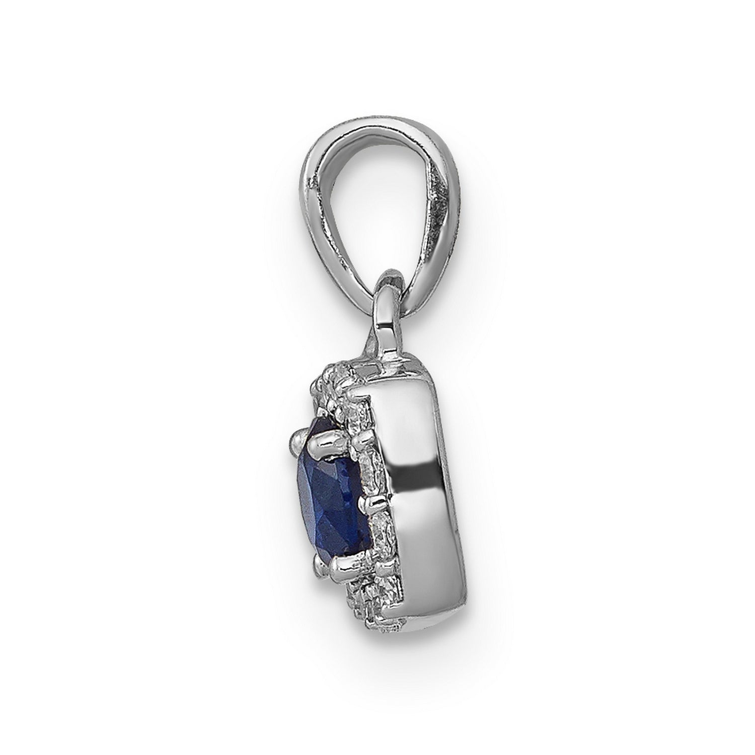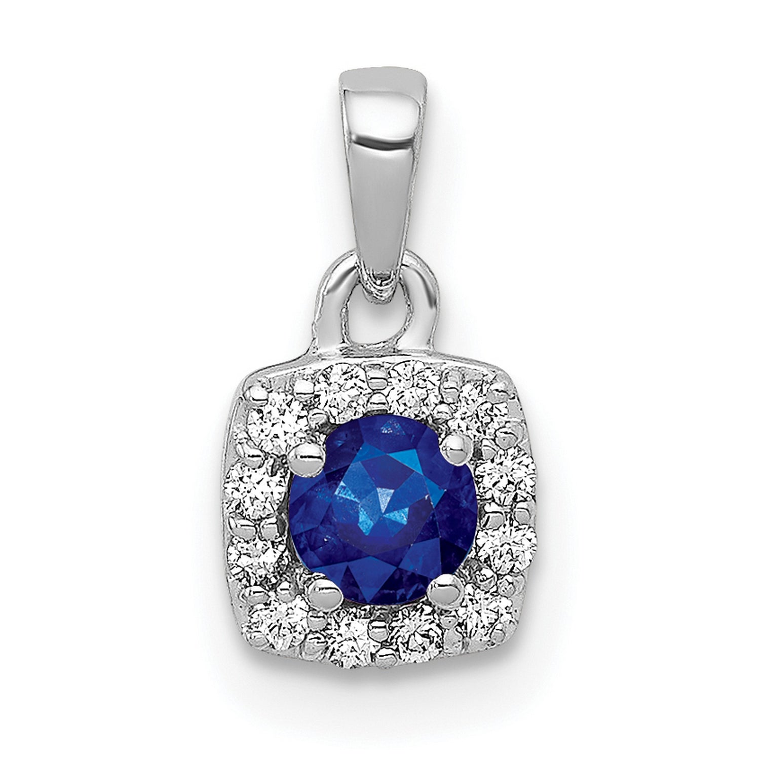 Diamond and .20 Sapphire Square Halo Charm Pendant in Real 14k White Gold