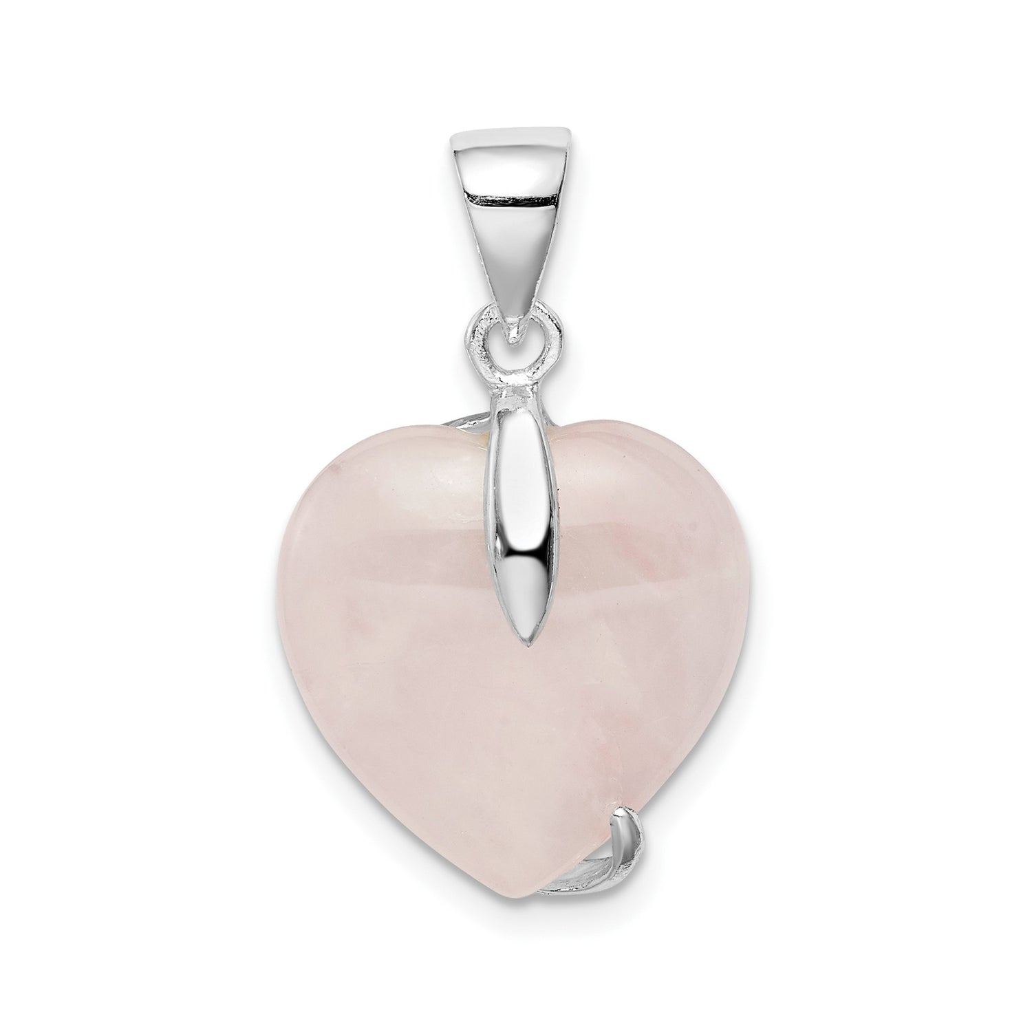 Sterling Silver Heart Pendant with Rose Quartz and Crescent Moon Design