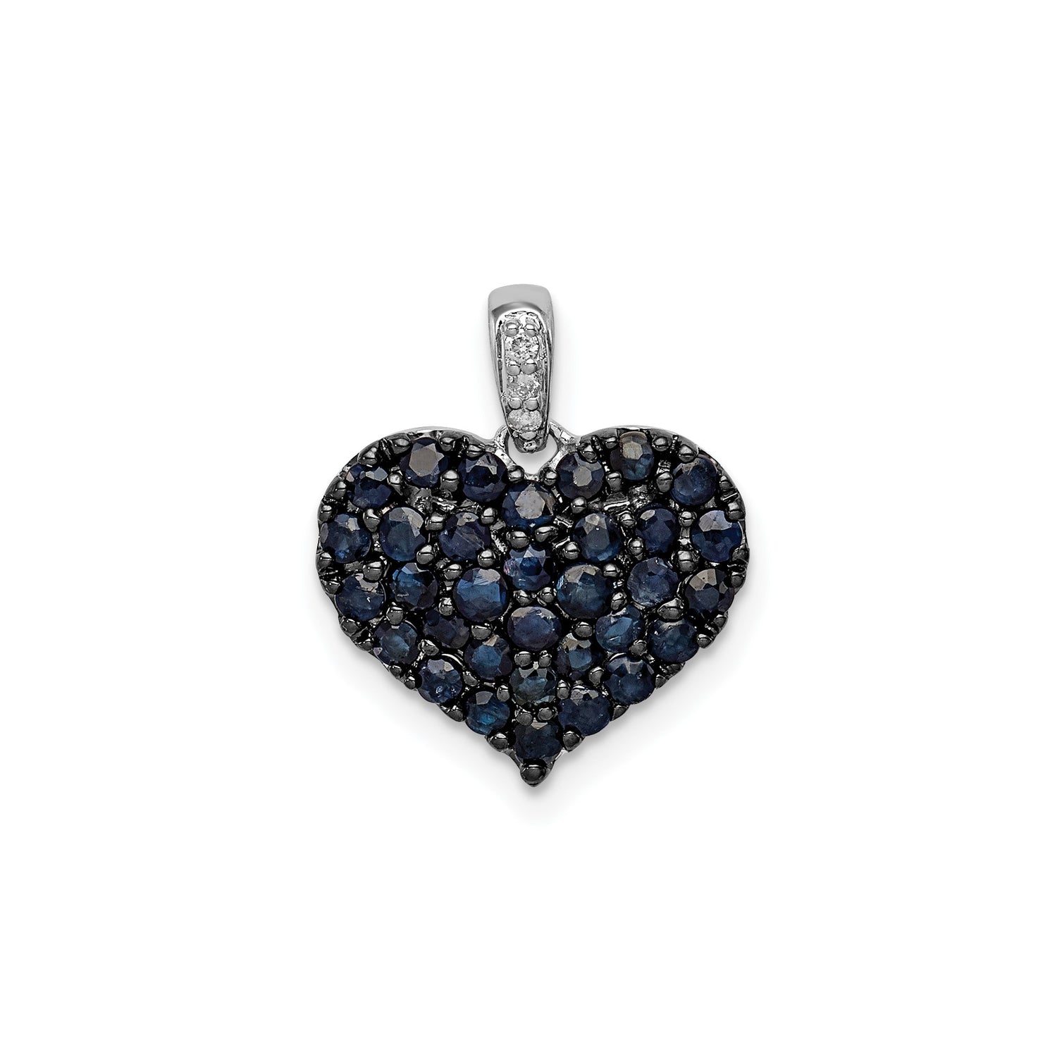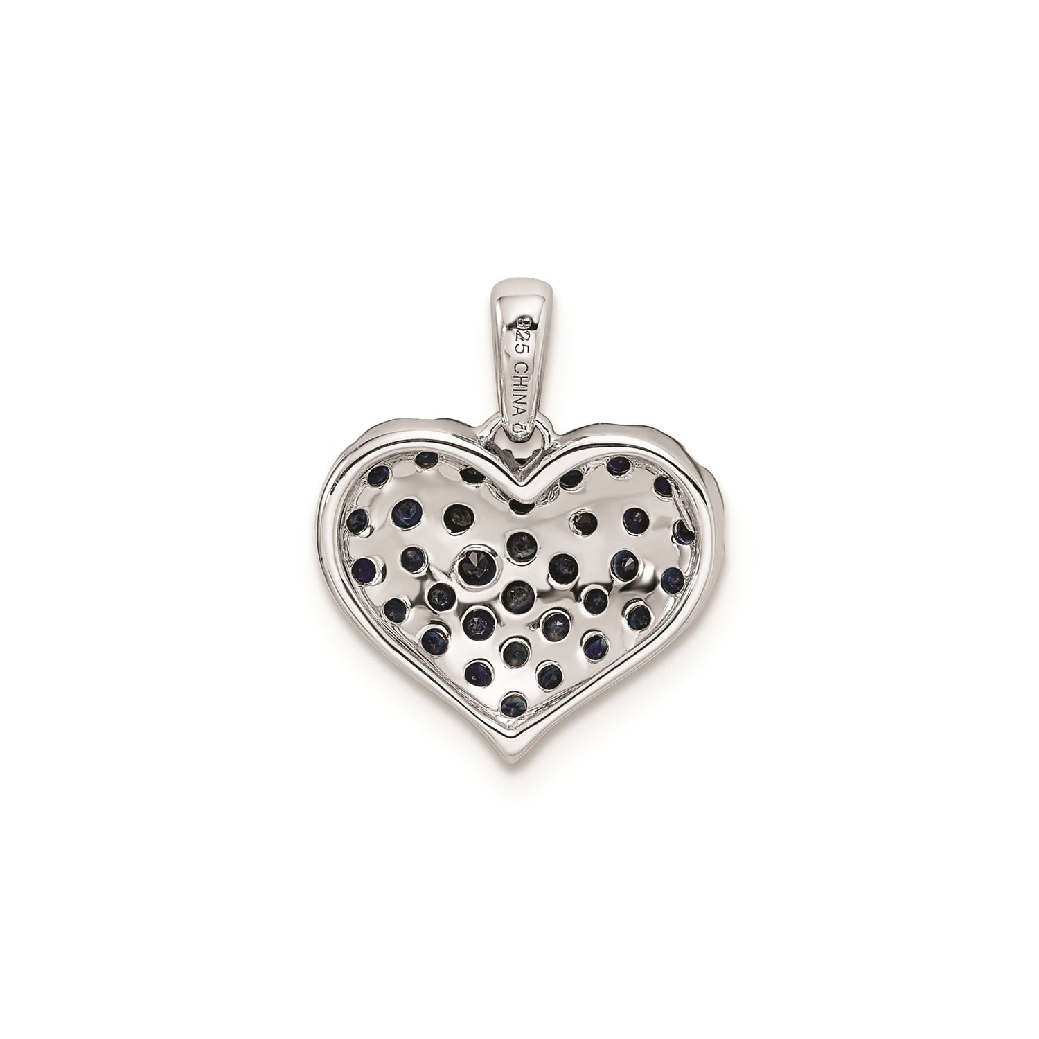 Sterling Silver Heart Pendant with Sapphire Pavé and Diamond Accent Bail for Women