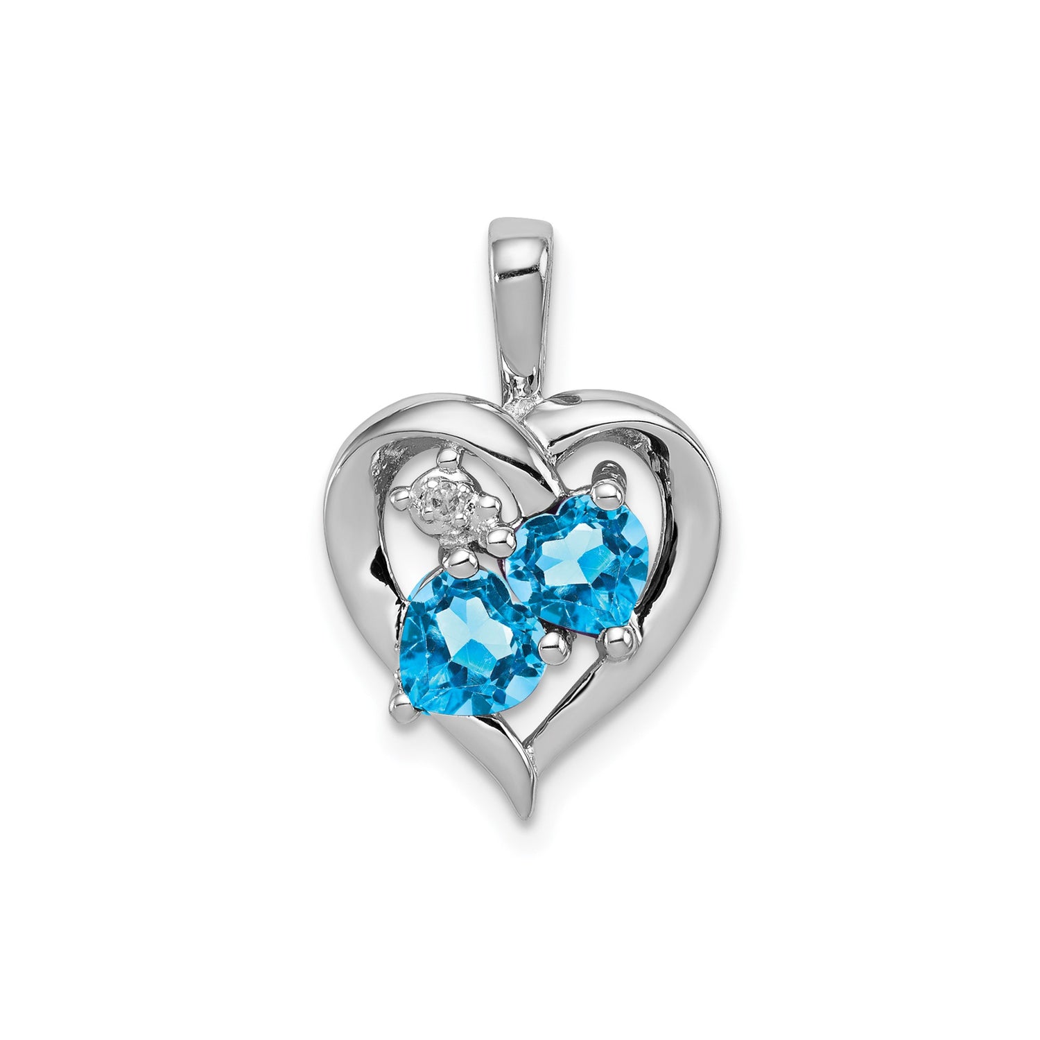 Sterling Silver Heart Pendant with Swiss Blue Topaz and Diamond Accents, Romantic Design