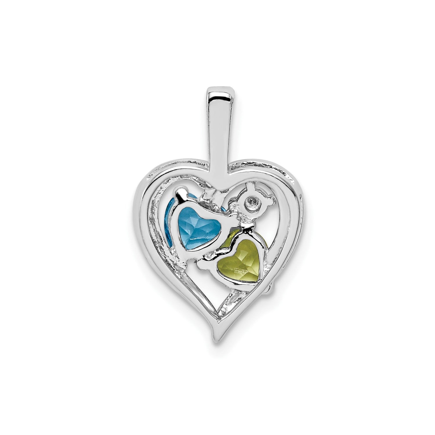 Sterling Silver Heart Pendant with Swiss Blue Topaz and Peridot, Romantic Couples Jewelry