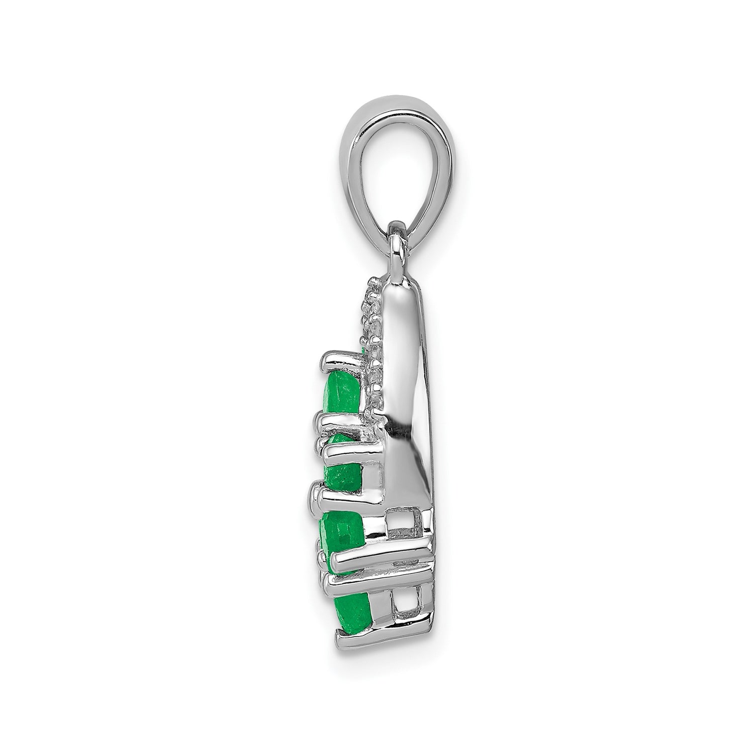 Sterling Silver Marquise Pendant with Emerald, Diamond Accents, Floral and Leaf Design