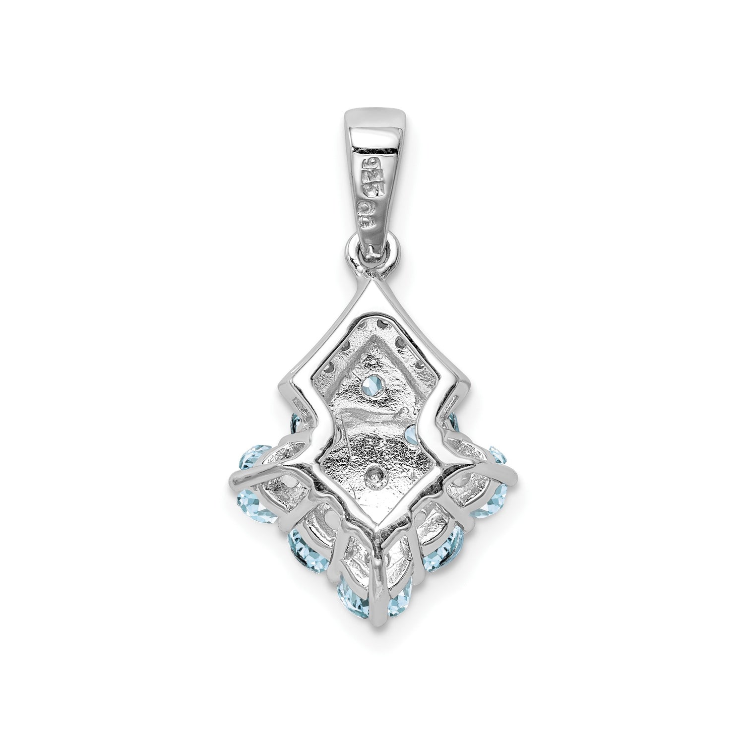 Sterling Silver Pendant with Aquamarine and Diamond Accents, Geometric Cluster Design for Women