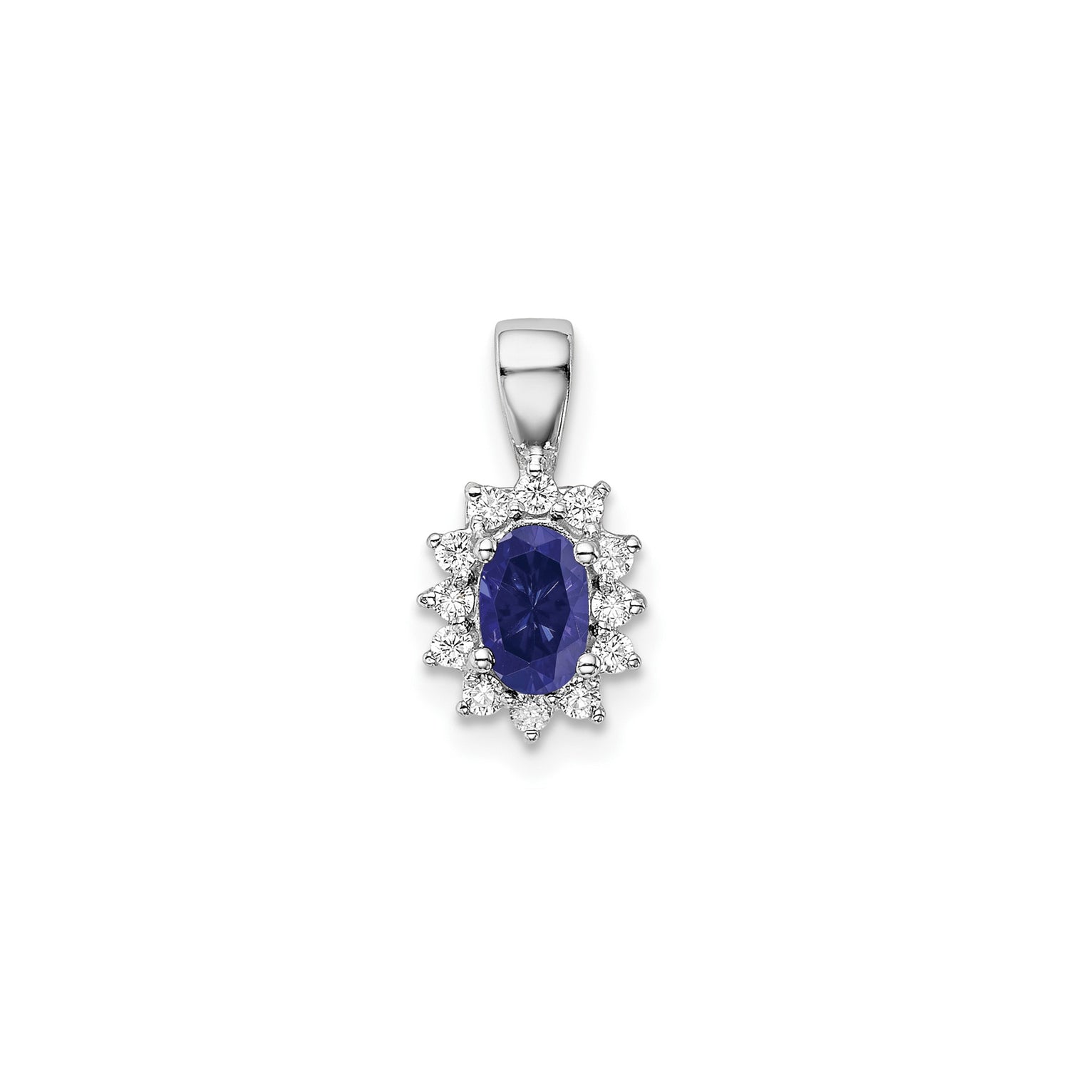 Sterling Silver Pendant with Cubic Zirconia and Lab Created Sapphire, Floral Halo Design