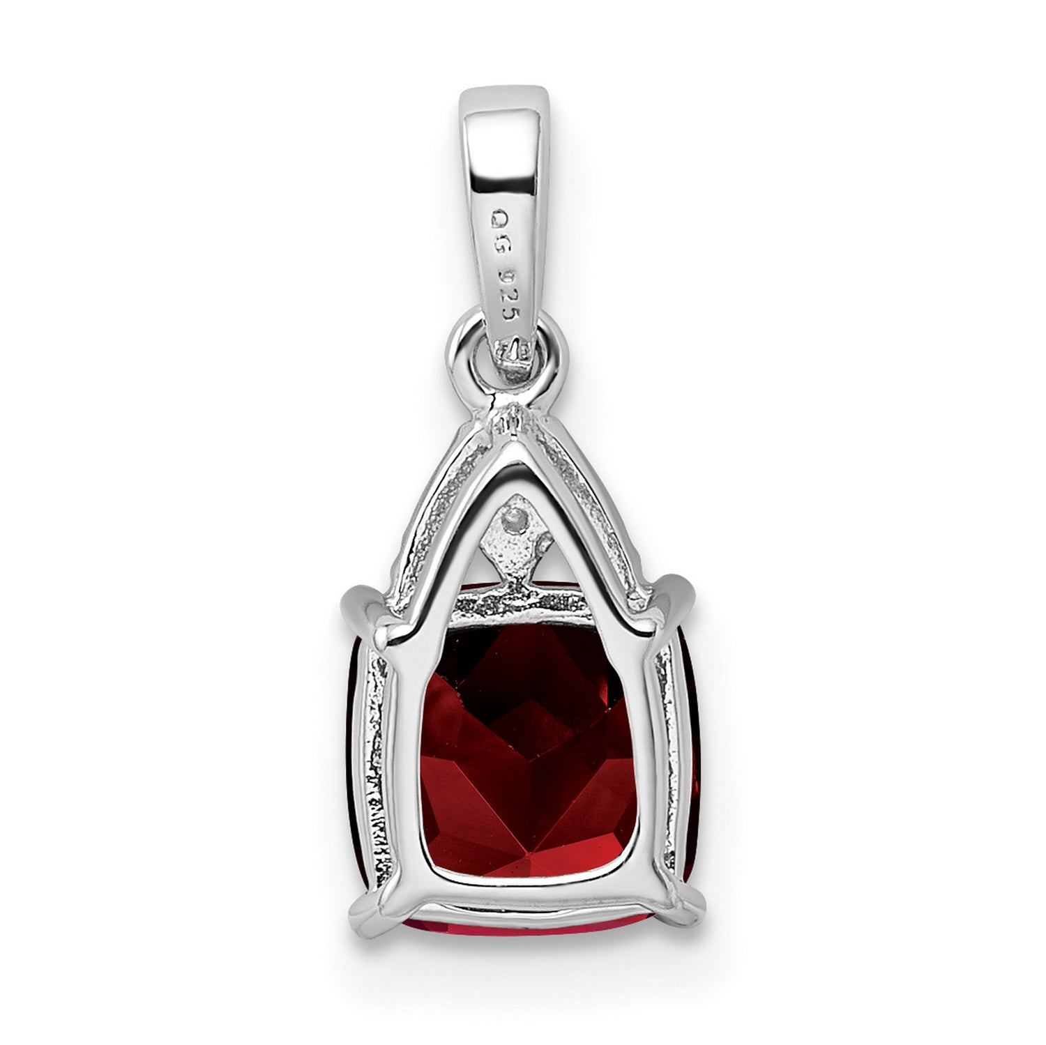 Sterling Silver Pendant with Cushion Cut Garnet and Diamond Accented Bail for Women