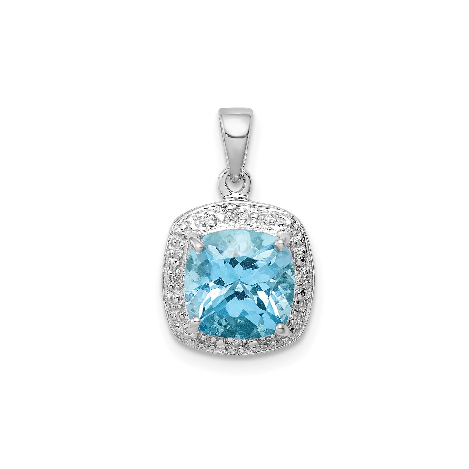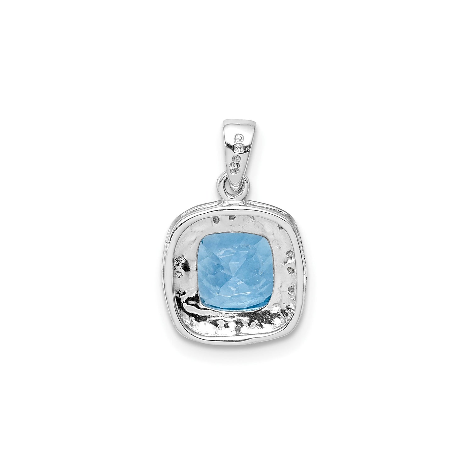 Sterling Silver Pendant with Cushion Cut Swiss Blue Topaz and Diamond Halo