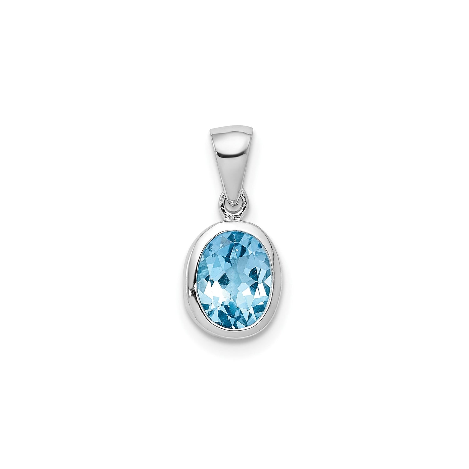 Sterling Silver Pendant with Oval Swiss Blue Topaz in Bezel Setting, Minimalist Jewelry for Women