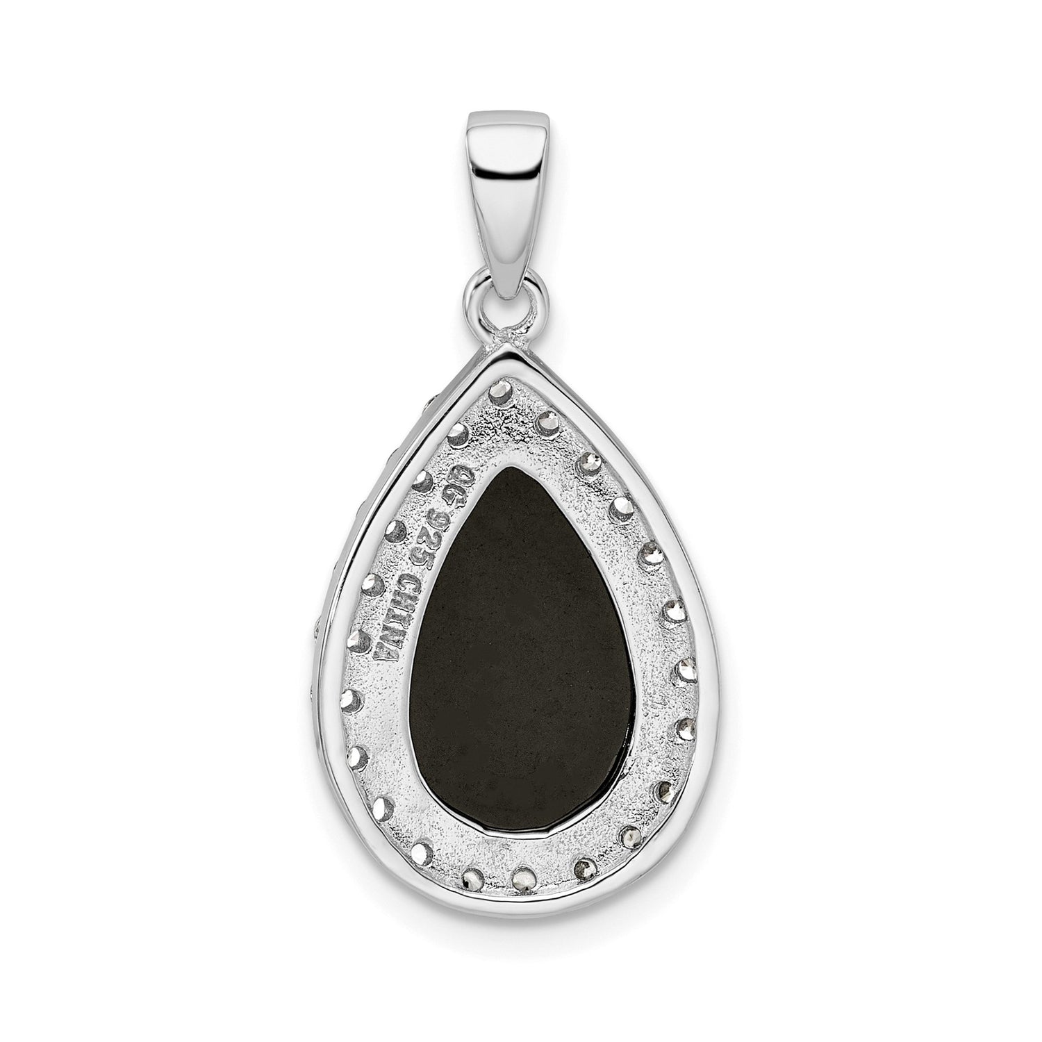 Sterling Silver Teardrop Pendant with Black Onyx Center and Cubic Zirconia Halo