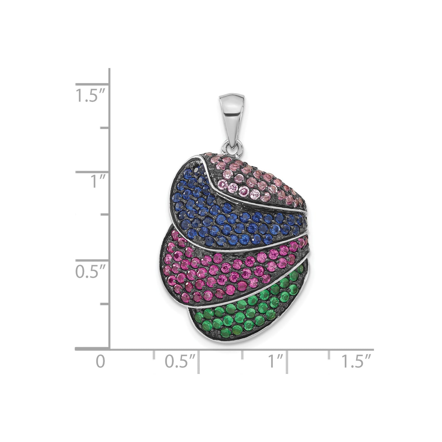Sterling Silver Teardrop Pendant with Multicolor Cubic Zirconia, Modern Abstract Design