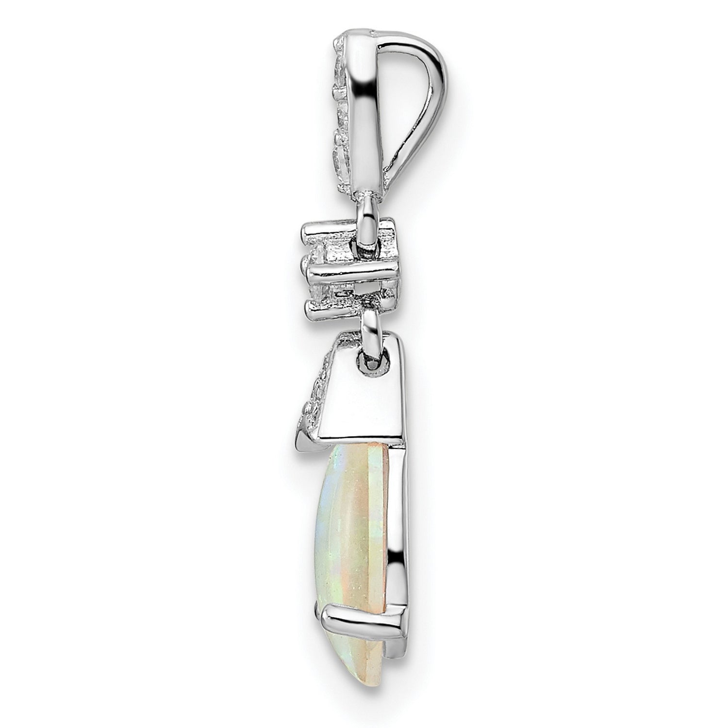 Sterling Silver Teardrop Pendant with Natural White Opal and Cubic Zirconia Accents