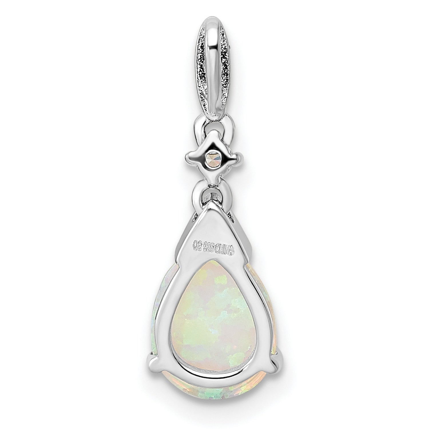 Polished CZ and Synthetic Opal Charm Pendant in Real 925 Sterling Silver