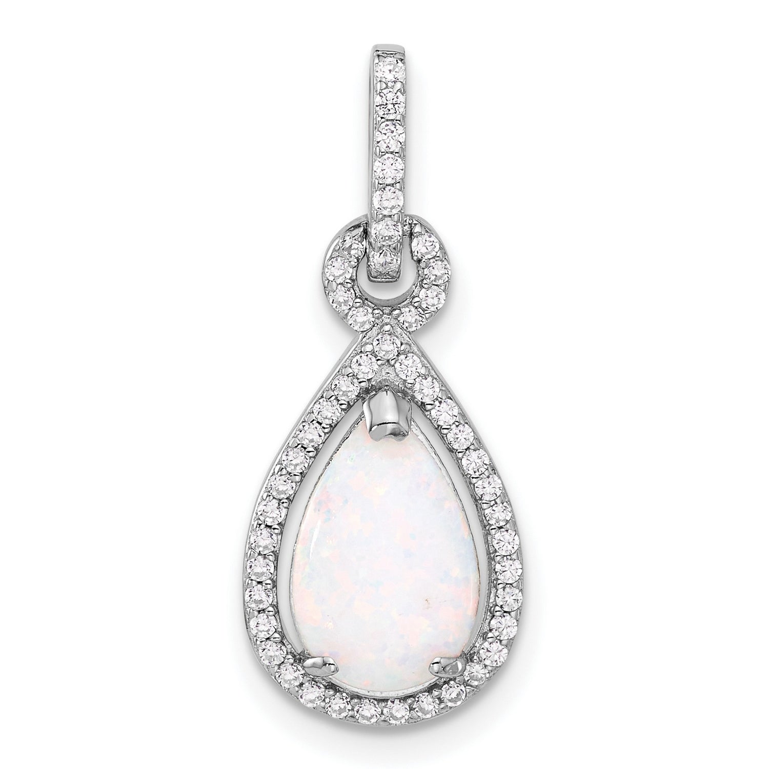 - Exquisite Design: Features a captivating Created Opal centerpiece accented with sparkling Cubic Zirconia (CZ), set in a beautiful teardrop shape.