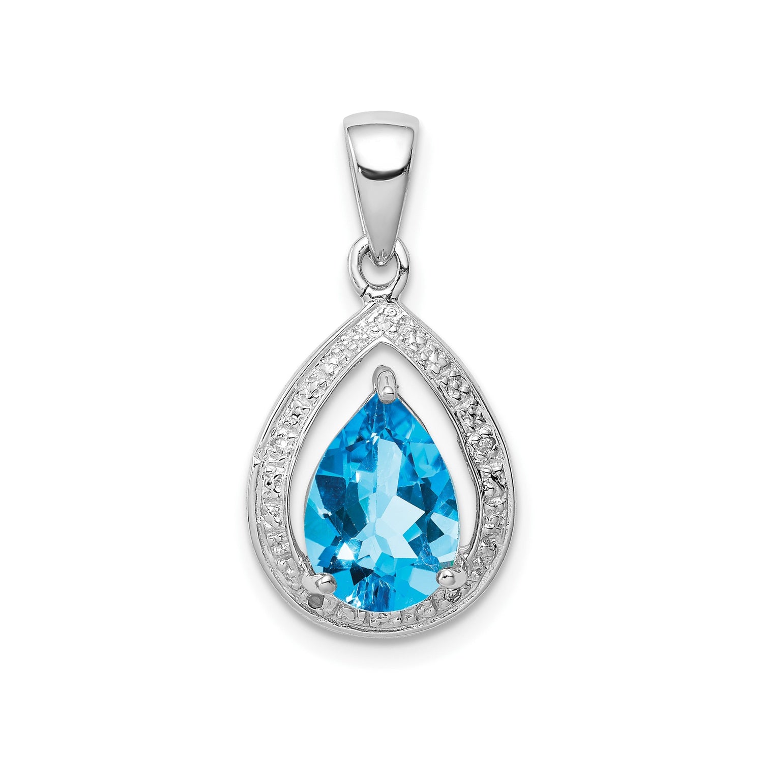 Sterling Silver Teardrop Pendant with Swiss Blue Topaz and Diamond Halo