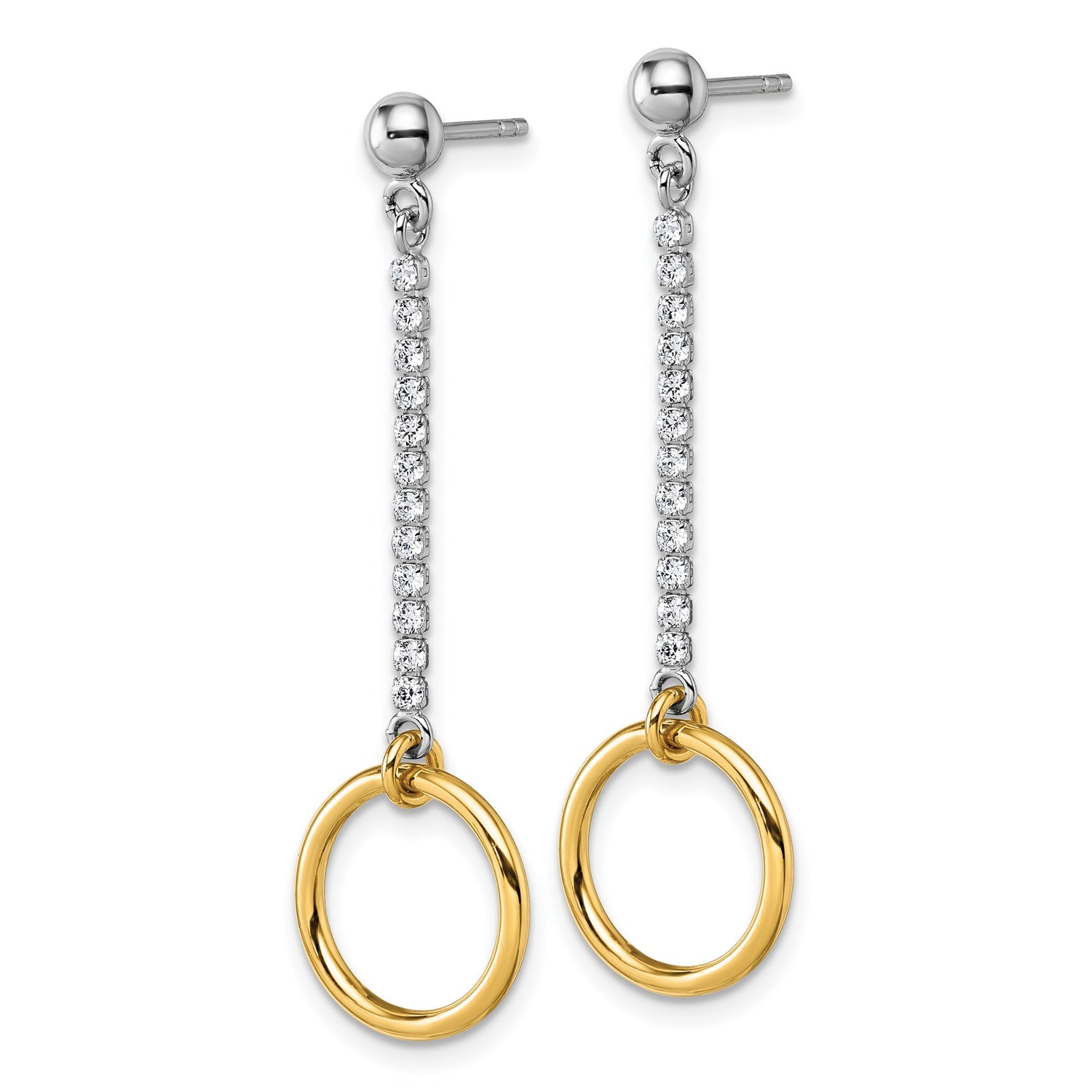 Sterling Silver Drop Earrings with Cubic Zirconia and Gold-Tone Open Circle Charm