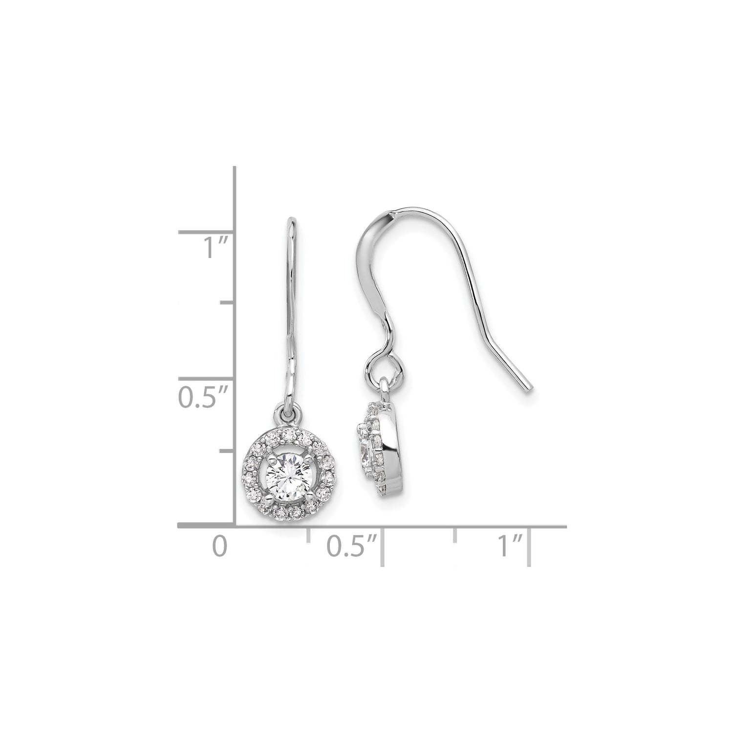 Sterling Silver Drop Earrings with Cubic Zirconia, Halo Design, Classic Bridal Style