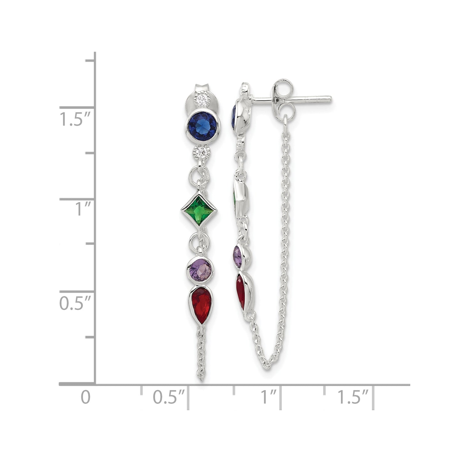 Sterling Silver Drop Earrings with Cubic Zirconia in Mixed Cuts and Colors for Women