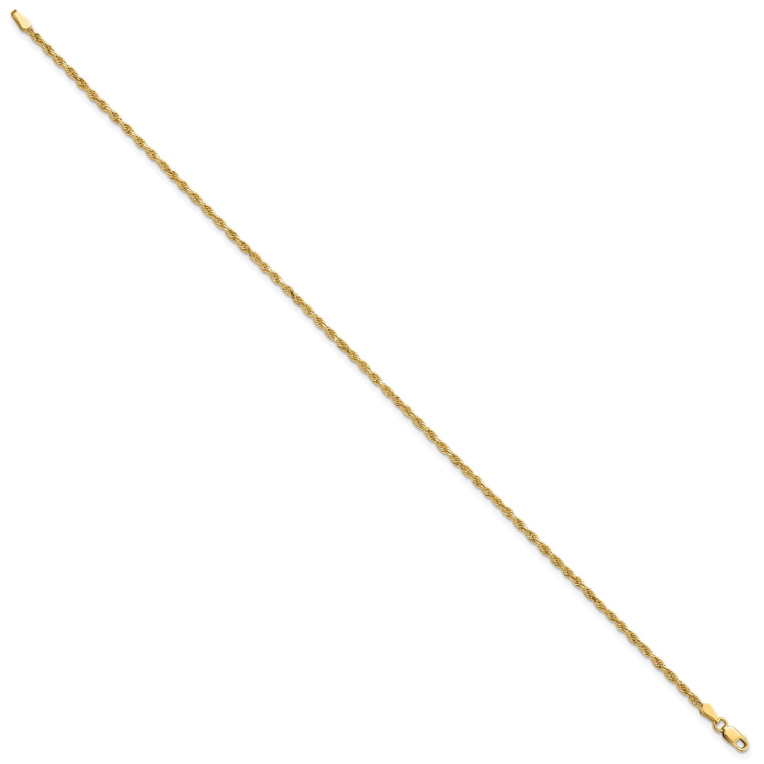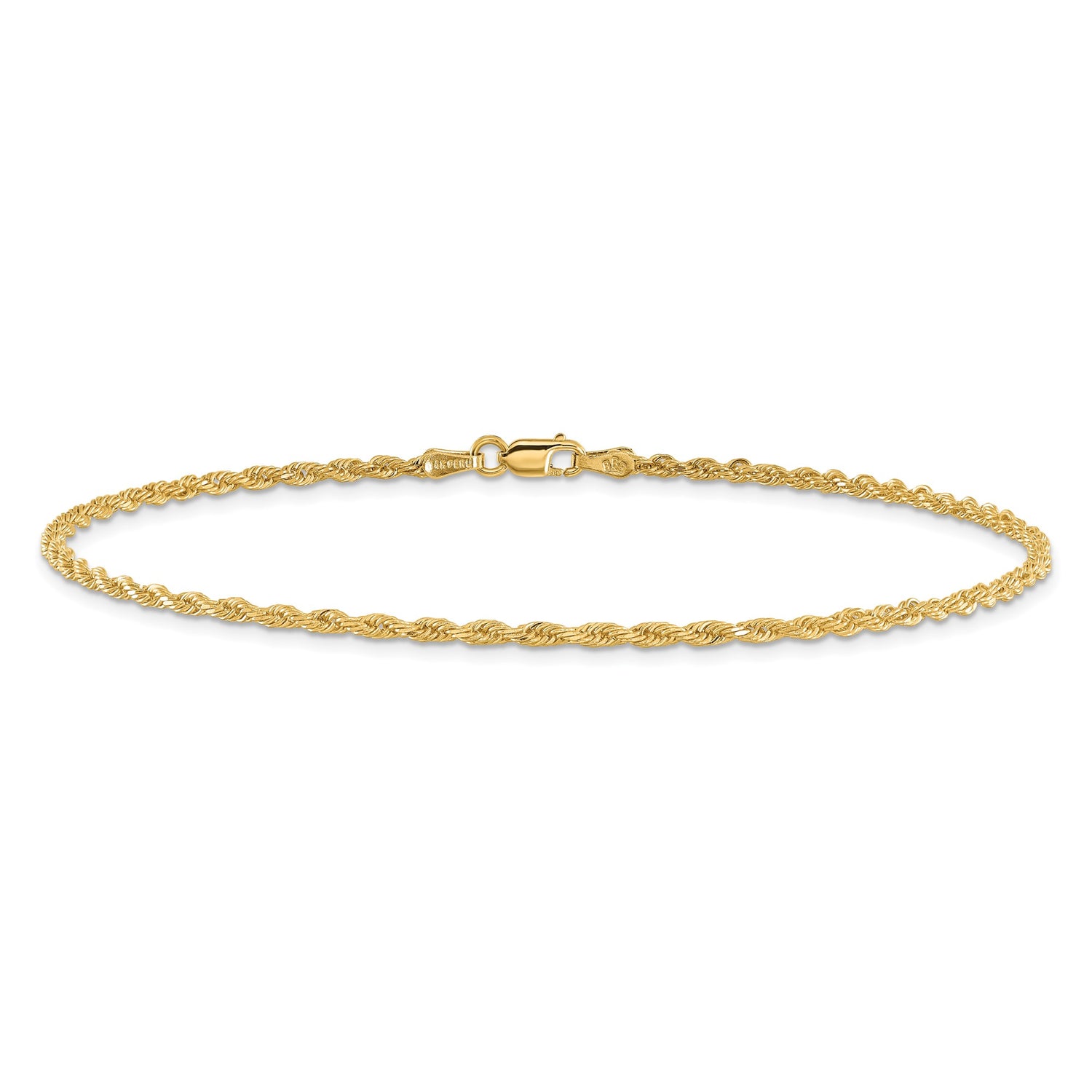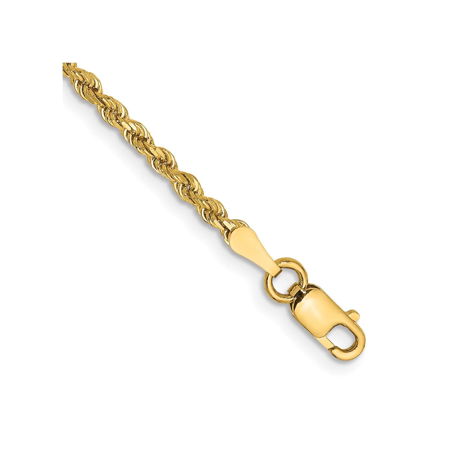 14K Yellow Gold Rope Chain Bracelet, 2 mm