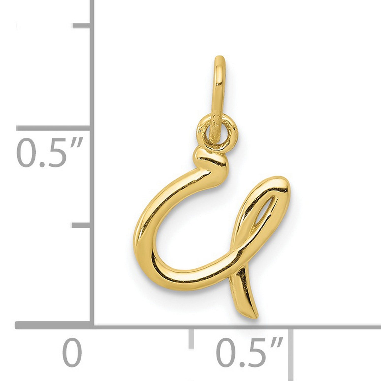 10k Yellow Gold Script Letter A Pendant, Cursive Initial Charm for Women