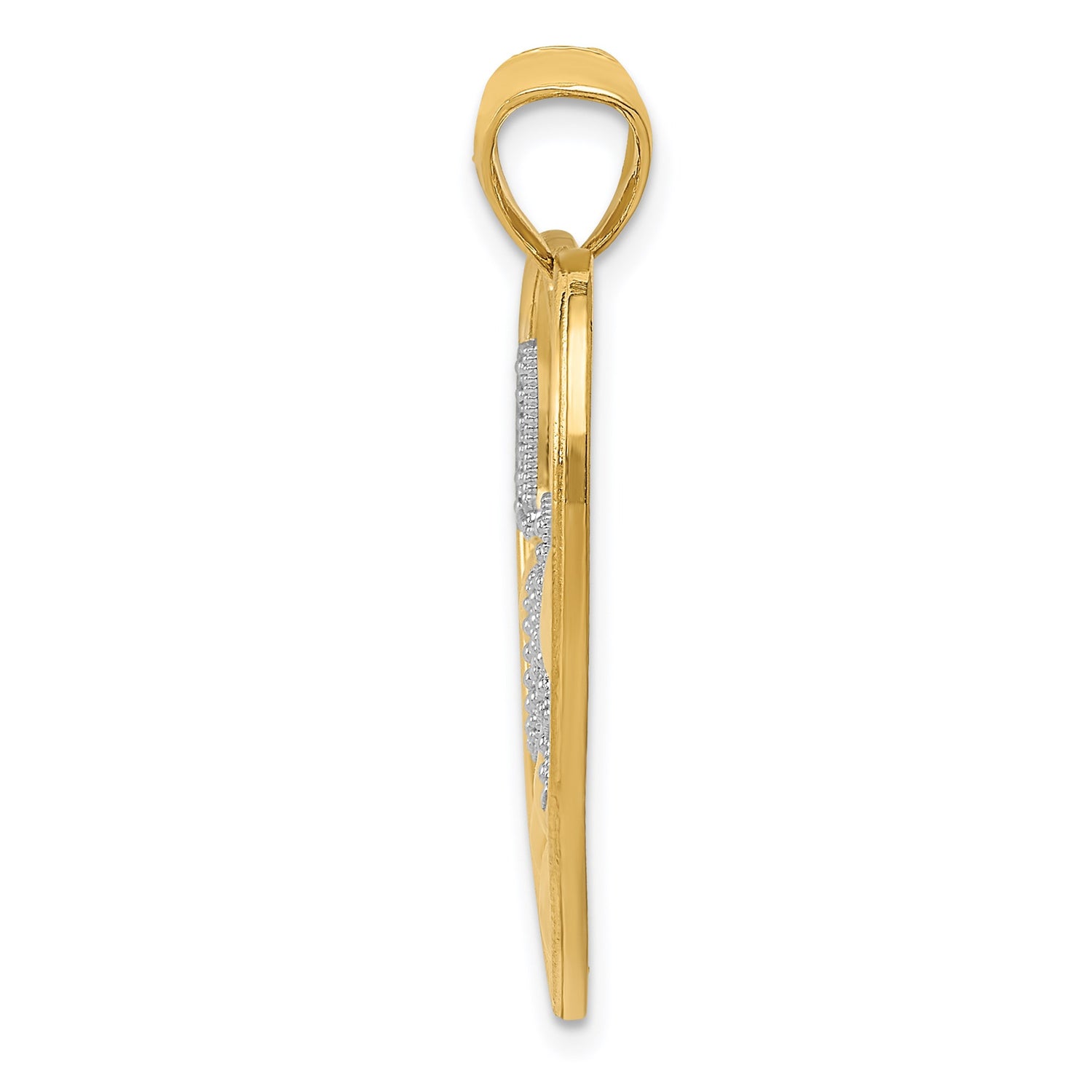 14k Multi-Tone Gold Heart Pendant with Textured Rhodium LOVE Script and Floating Accents