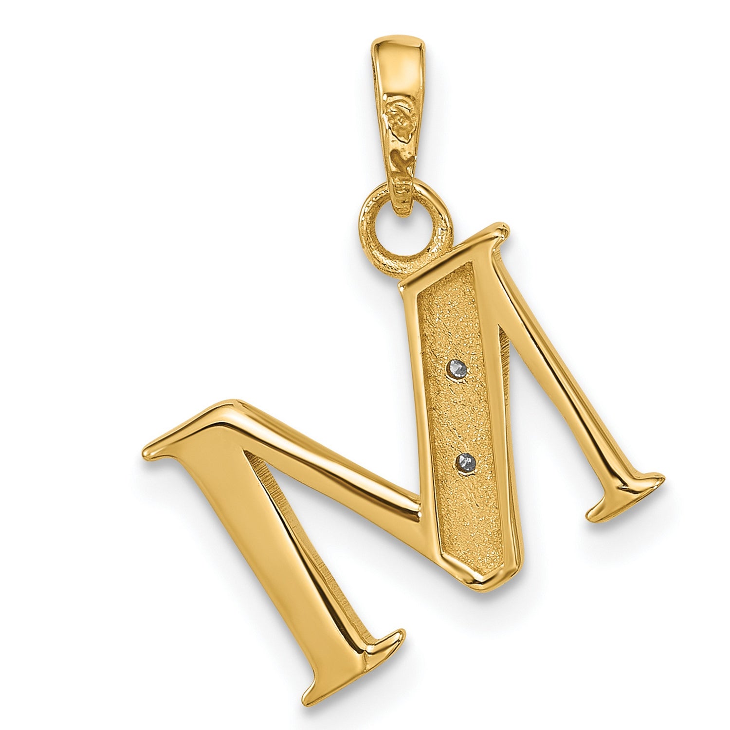 14k Multi-Tone Gold Letter M Pendant with Diamond Cut Accents