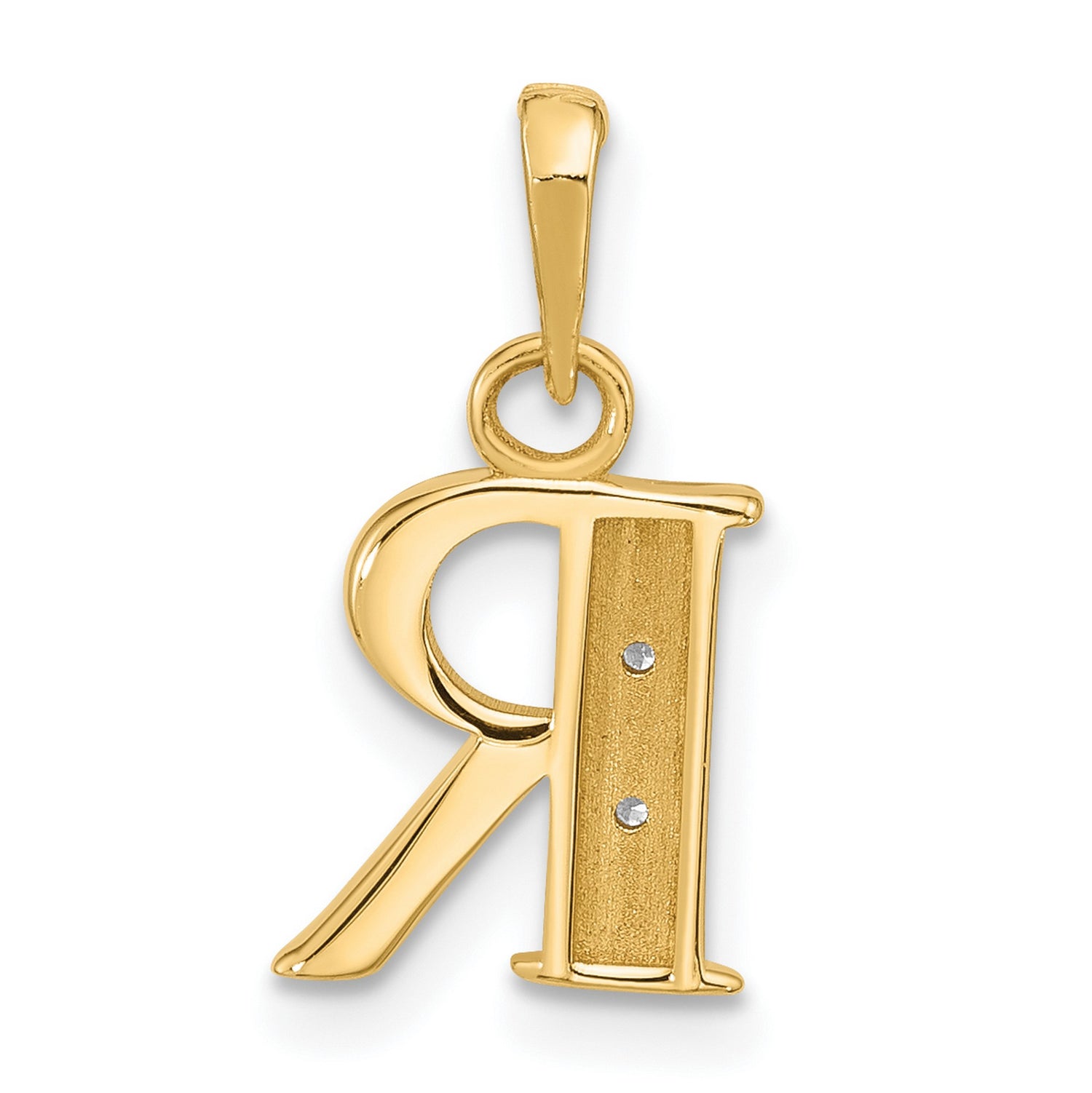 Diamond Letter R Initial Charm Pendant in Real 14k Multi-Tone Gold