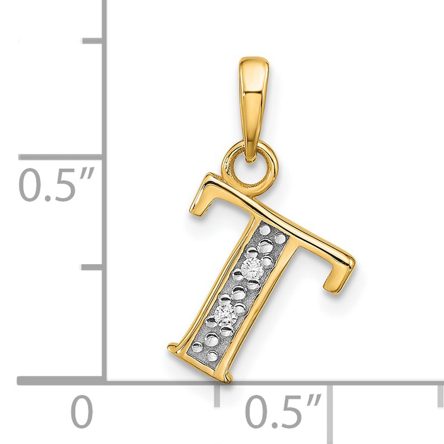 14k Multi-Tone Gold Letter T Pendant with Diamond Cut Detail, Alphabet Charm Jewelry