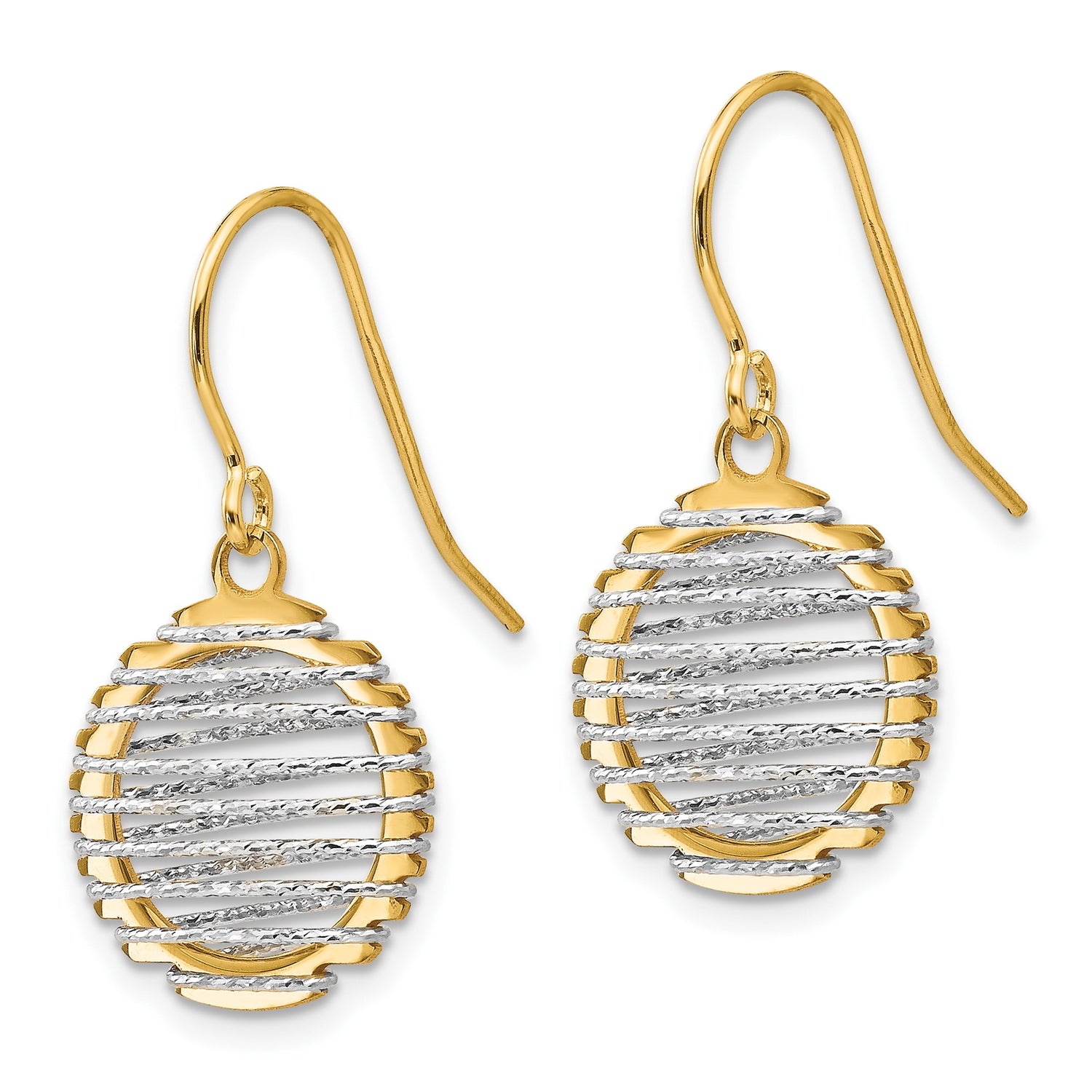 14k Two-Tone Gold Dangle Earrings with Openwork Spiral Design, Geometric Drop Style for Women