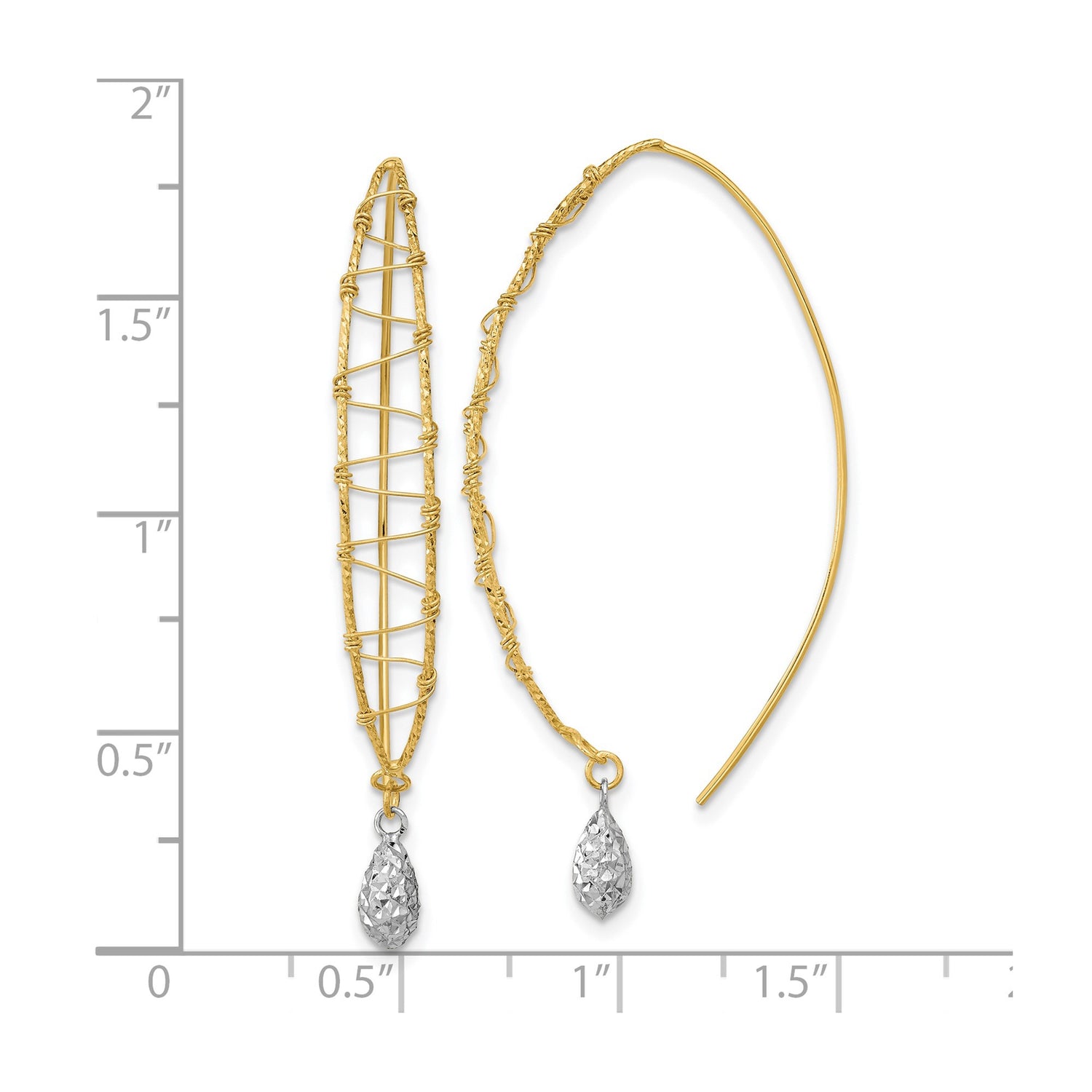14k Two Tone Gold Drop Earrings with Wrapped Design and Diamond-Cut Teardrop Dangles