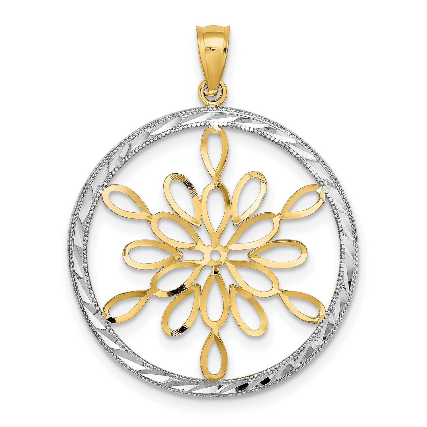 14k Two-Tone Gold Mandala Pendant with Floral Openwork Design for Women