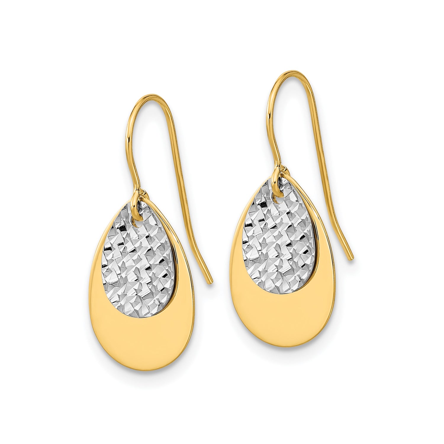 14k Two-Tone Gold Teardrop Dangle Earrings with Polished Yellow Gold and Diamond-Cut Center