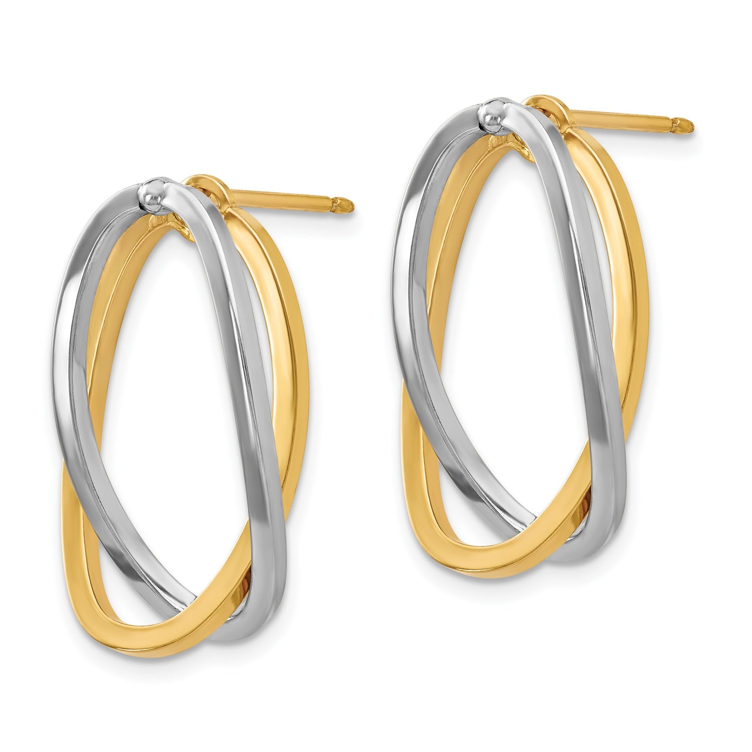 14k Yellow and White Gold Oval Hoop Earrings, Interlocking Polished Design for Women
