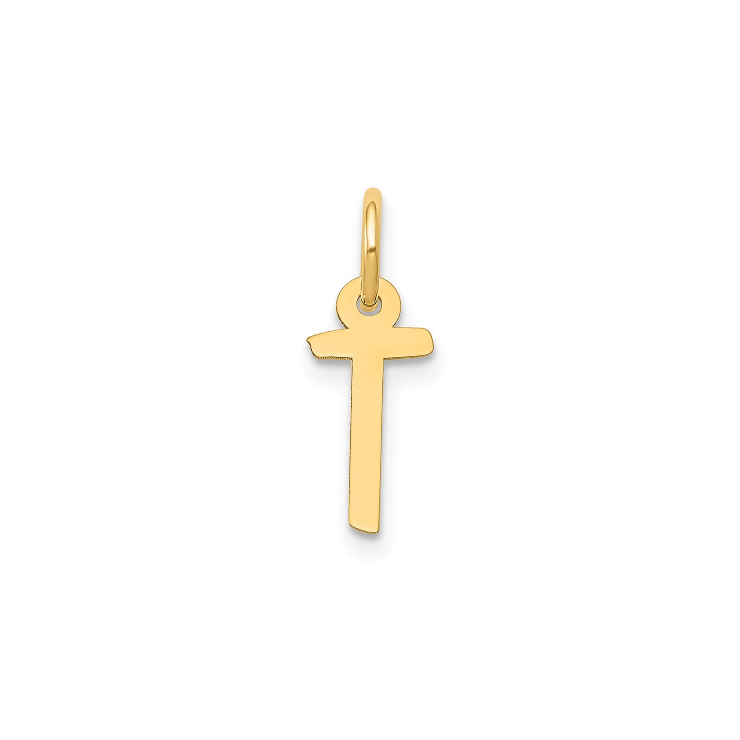 Embrace timeless elegance with our Solid Polished Slanted Block Style Letter T Initial Charm Pendant crafted from genuine 14k yellow gold. This exquisite piece is designed for those who appreciate the finer details and wish to personalize their jewelry collection with a meaningful charm.